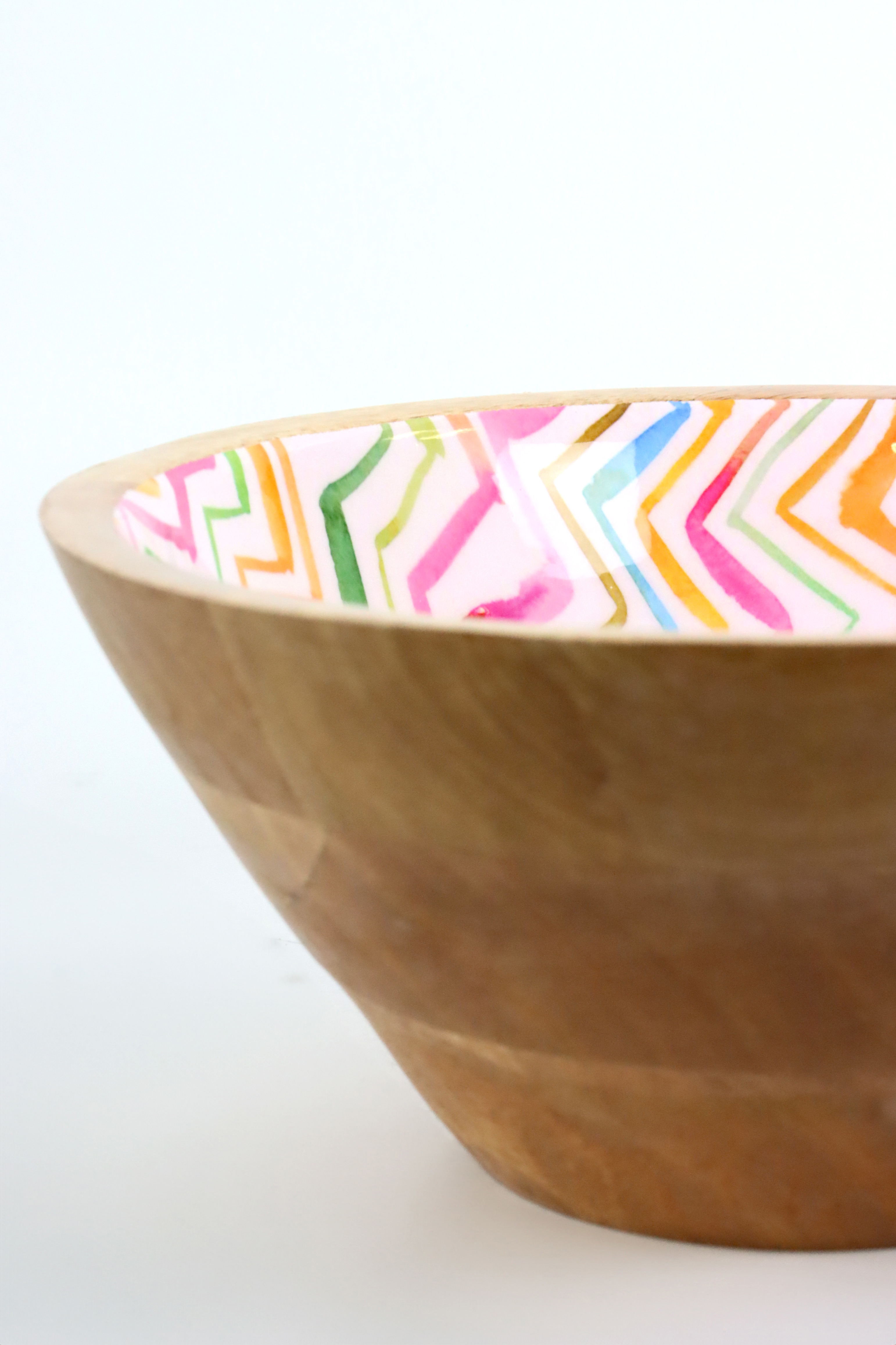 Das Design der Schale zeichnet sich durch ein auffälliges Zickzack-Muster aus, das moderne Trends perfekt mit natürlichem Charme verbindet. Mangoholz ist bekannt für seine Robustheit, Nachhaltigkeit und einzigartige Maserung, die jeder Schale eine individuelle Note verleiht. So wird jedes Stück zu einem Unikat, das Ihre Kunden lieben werden.