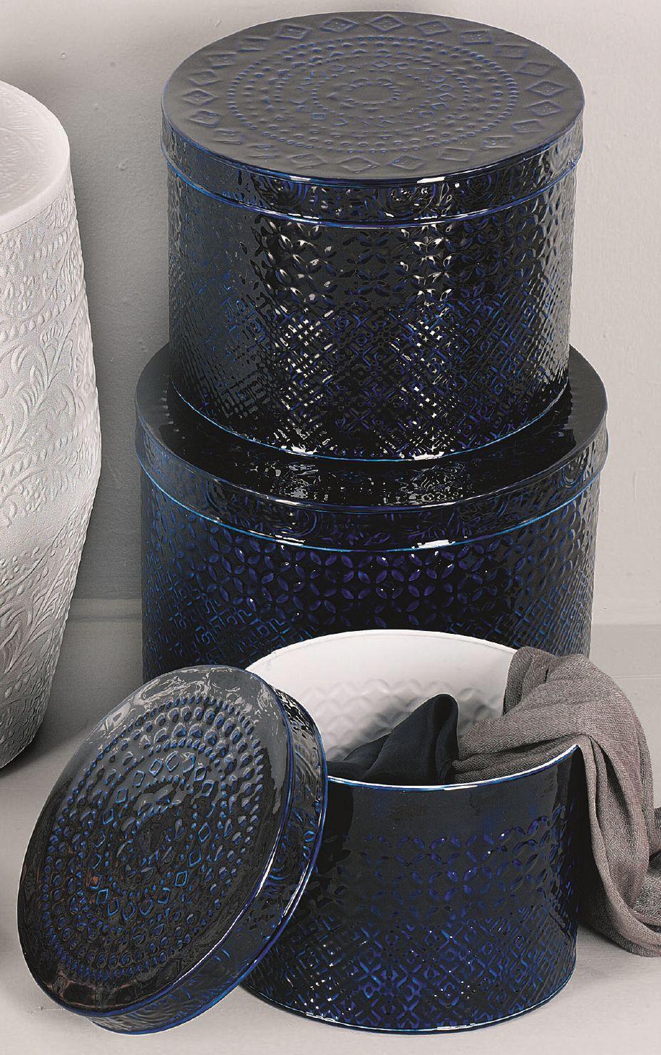 Erleben Sie die perfekte Kombination aus Funktionalität und Stil mit unserem Blechdosenset "Fès". Dieses dreiteilige Set bietet Ihnen nicht nur praktische Aufbewahrungslösungen, sondern ist auch ein ästhetischer Blickfang, der in jedem Raum Ihrer Kunden Akzente setzt. Die Blechdosen sind in einem edlen Blauton gestaltet und fügen sich nahtlos in moderne Wohnkonzepte ein, was sie zu einem idealen Sortiment für Händler im Bereich Wohnen und Lifestyle macht.