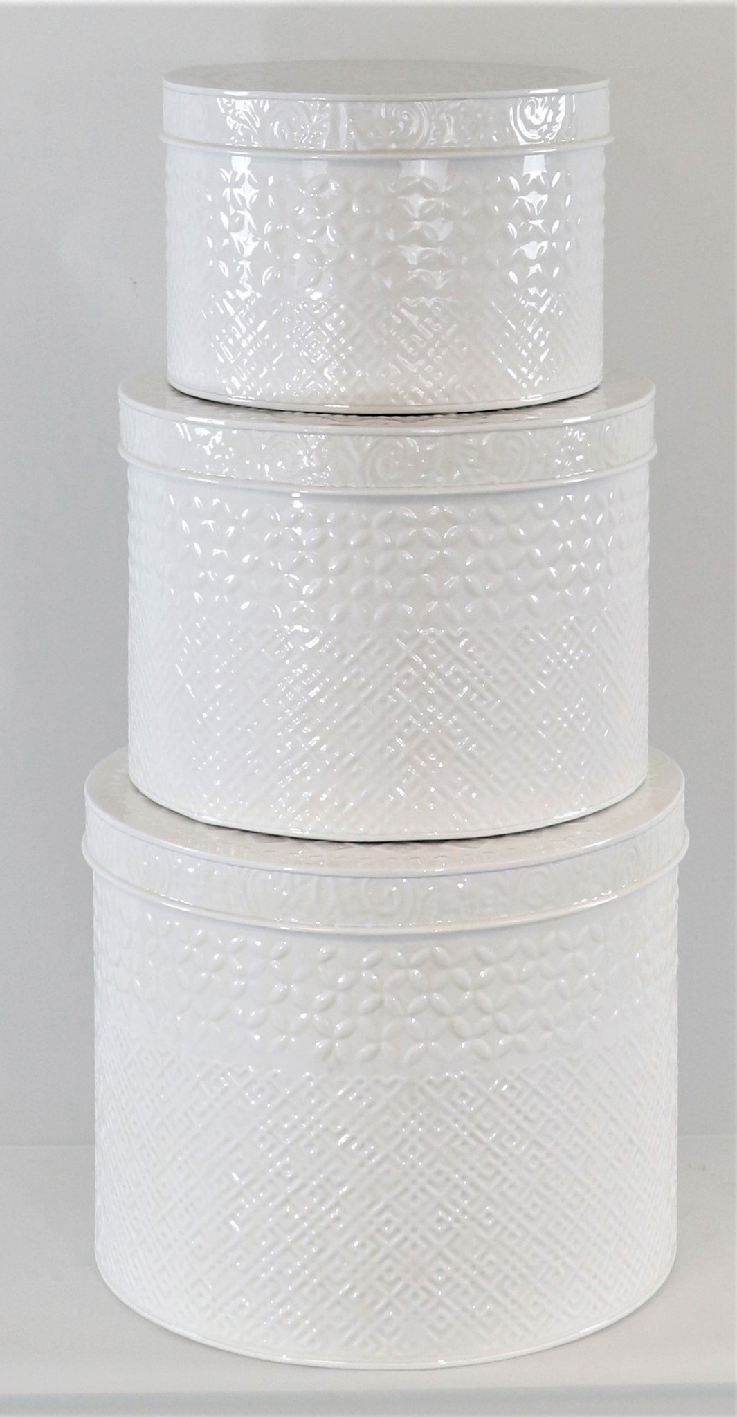 - Elegantes, dreiteiliges Blechdosenset in schlichter Weißoptik