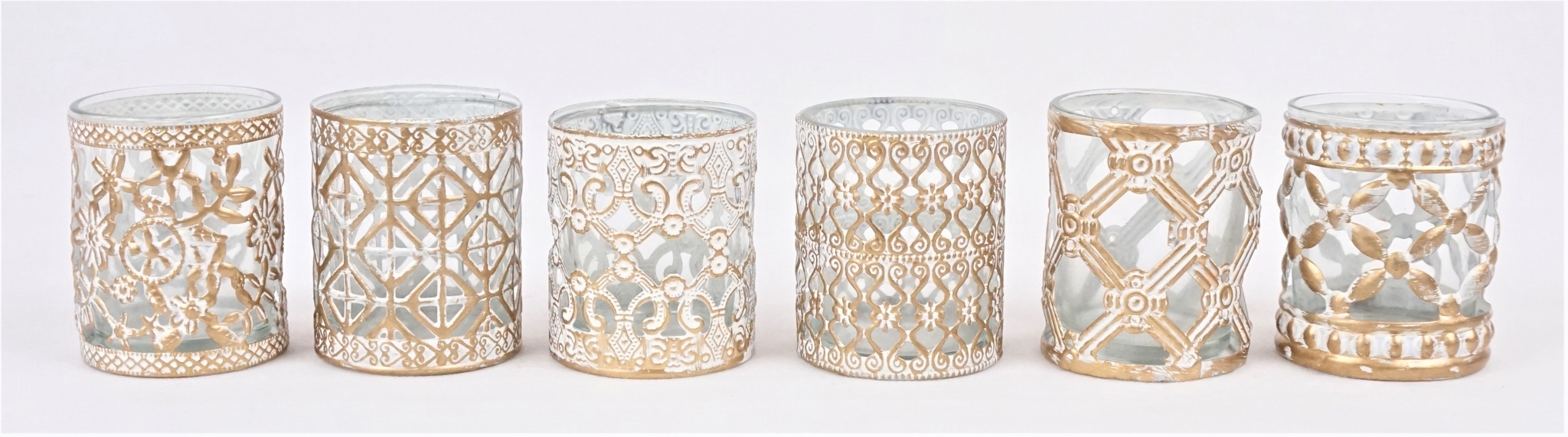 Erleben Sie mit dem Tischlichter-Set "Belvedere" ein unvergleichliches Ambiente in Ihren Wohn- und Geschäftsräumen. Dieses sechsteilige Teelichterset bietet Ihnen die Möglichkeit, eine ganz besondere Atmosphäre zu schaffen, die Ihre Kunden und Gäste gleichermaßen in ihren Bann zieht. Der orientalische Stil kombiniert mit den harmonischen Farben Gold und Weiß sorgt für elegante Akzente und zeitlose Behaglichkeit.