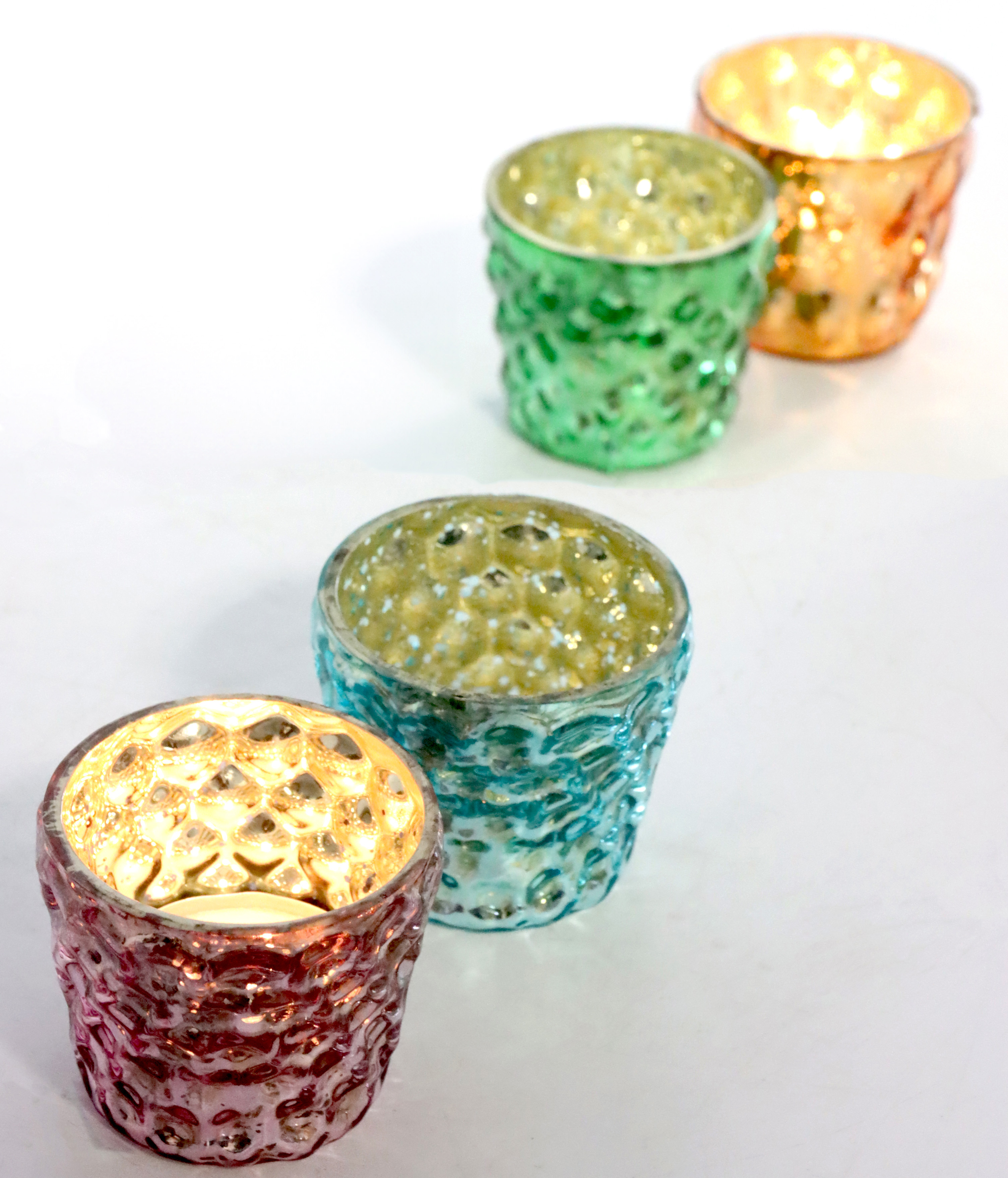 - Set bestehend aus vier Windlichtern in den Farben Pastel Rosa, Grün, Blau und Orange