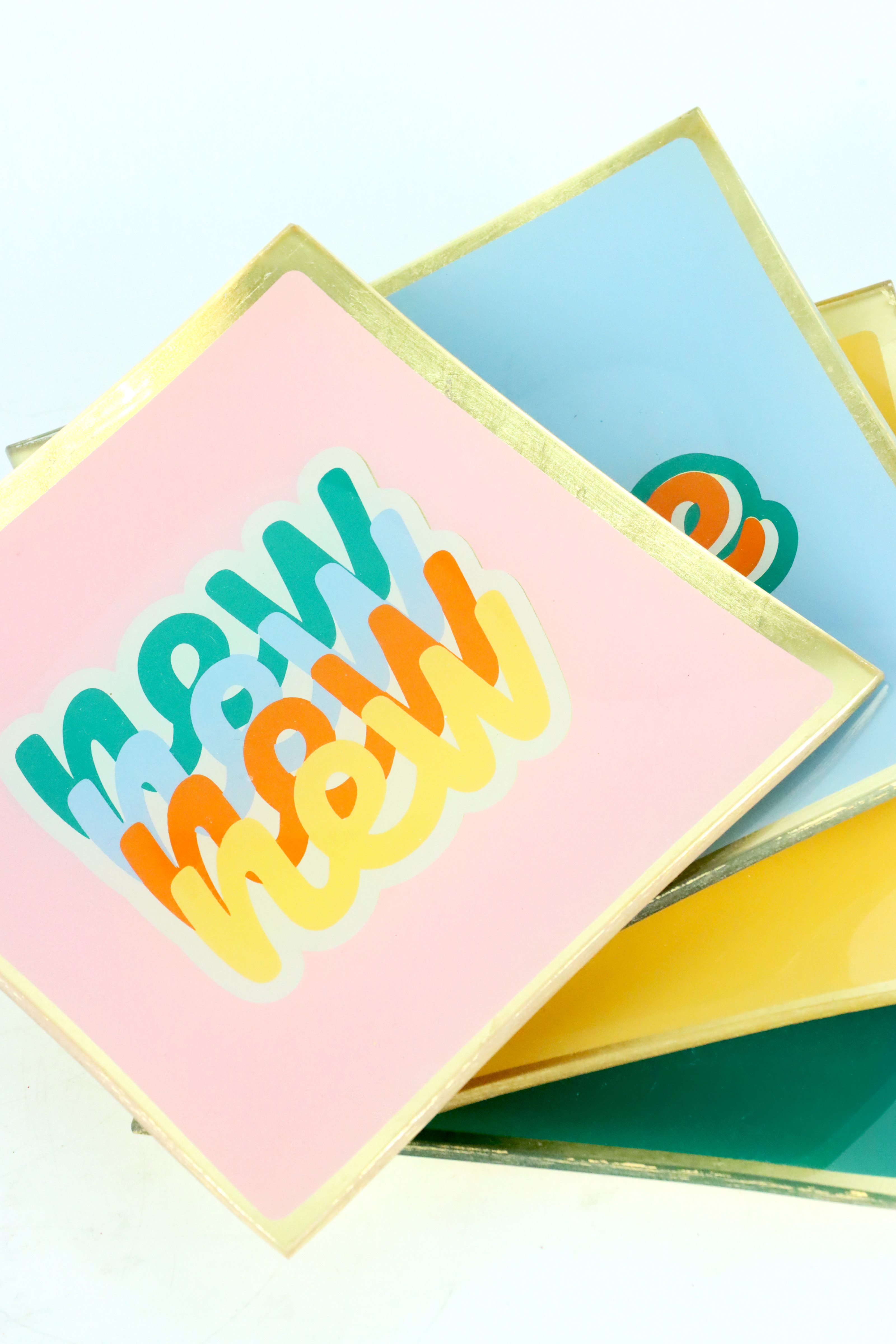 - Stilvolles 4-teiliges Glasteller-Set mit dekorativen Botschaften