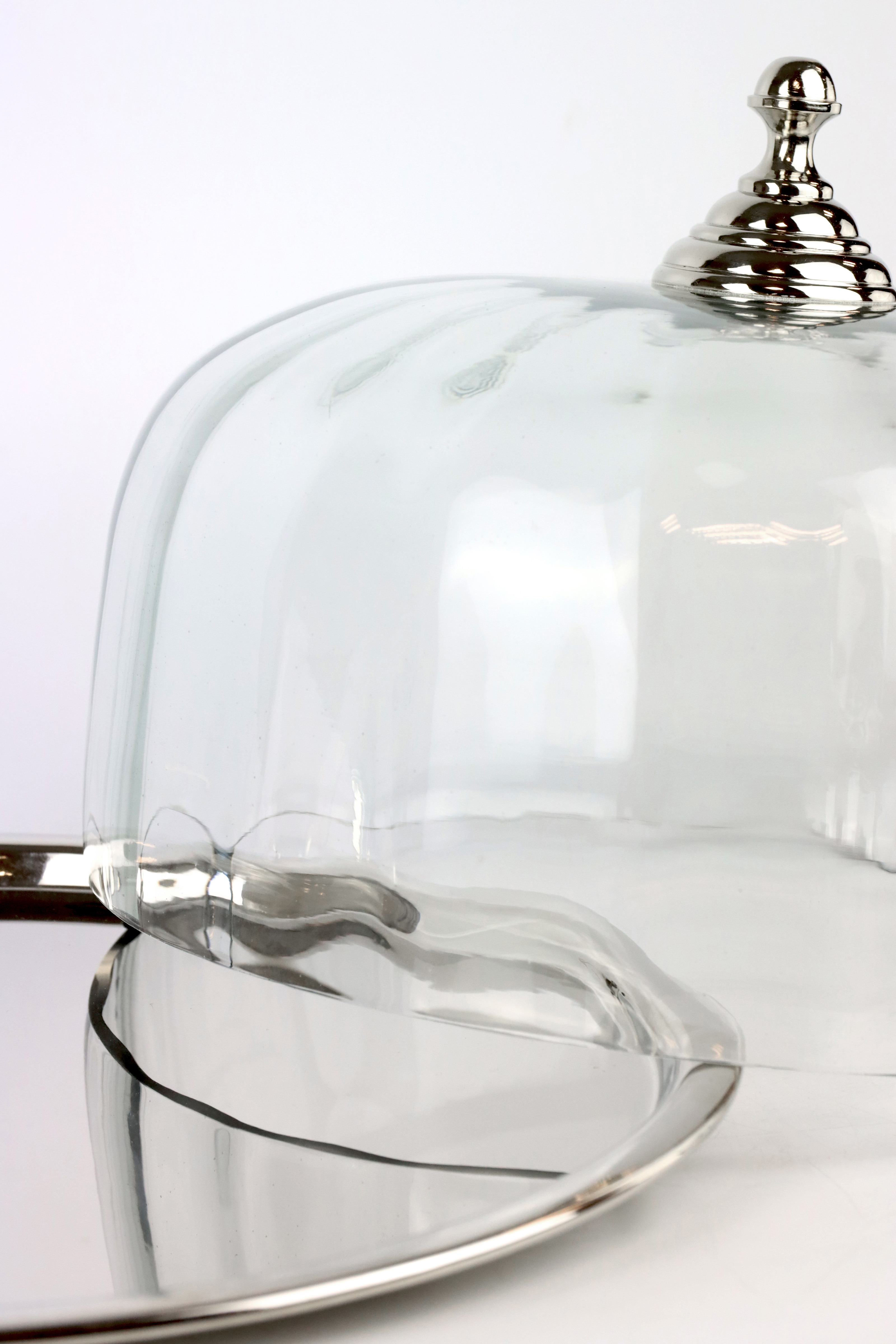 Die feine Verarbeitung und das hochwertige silberne Finish zeichnen dieses Produkt als ein zeitloses Schmuckstück aus. Der glänzende Teller bietet eine stabile Basis, die das Präsentieren von Delikatessen, wie Kuchen, Käse oder Desserts, stilvoll ermöglicht. Die Glocke schließt harmonisch ab und schützt den Inhalt vor äußeren Einflüssen, während sie gleichzeitig die Neugier weckt. Dieses geschmackvolle Set erhebt jede Tischdekoration auf ein neues Niveau und ist ein Must-have für jeden, der Wert auf Eleganz und Klasse legt.