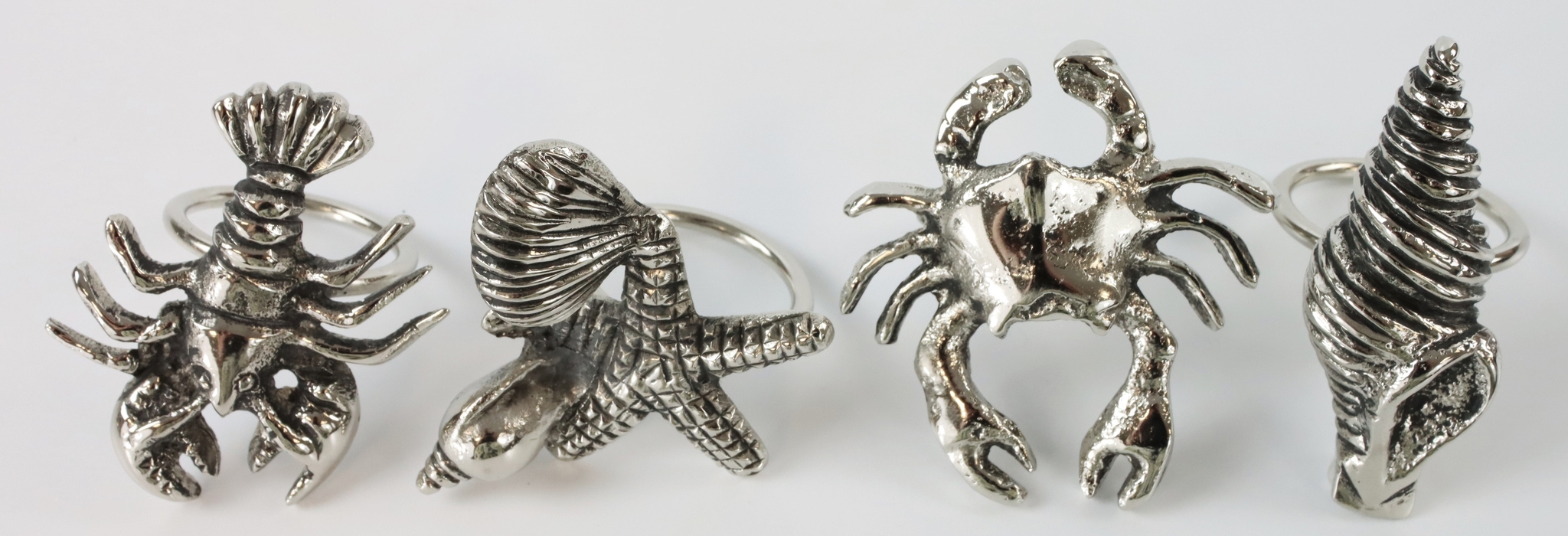 - Vierteiliges Set Serviettenringe mit Meerestieren in eleganter Silber-Optik