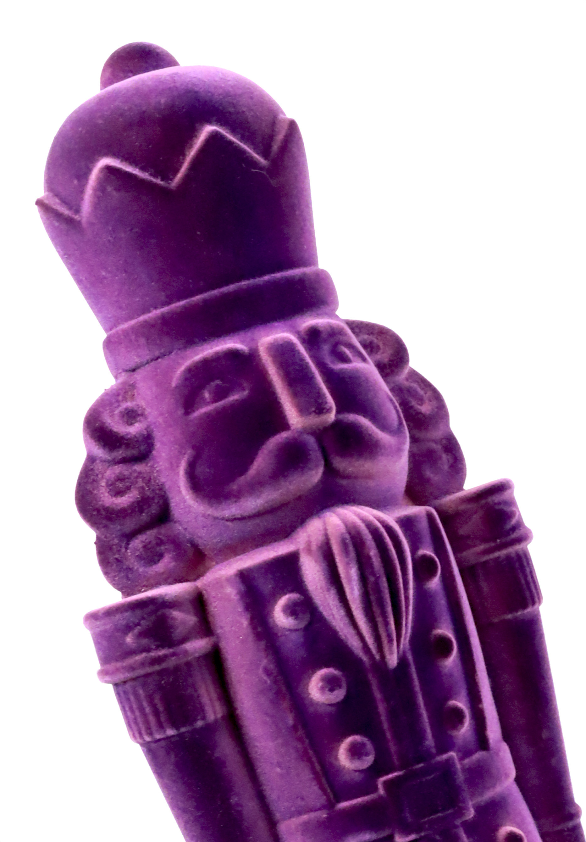 **SEO-relevante Keywords:** Weihnachtsdekoration, Samtnussknacker, lila Nussknacker, Weihnachtsfigur, Nussknacker-Sammlung, luxuriöse Weihnachtsdeko, elegantes Wohndesign, Lifestyle Einzelhandel, festliche Atmosphäre, Schaufensterdekoration.