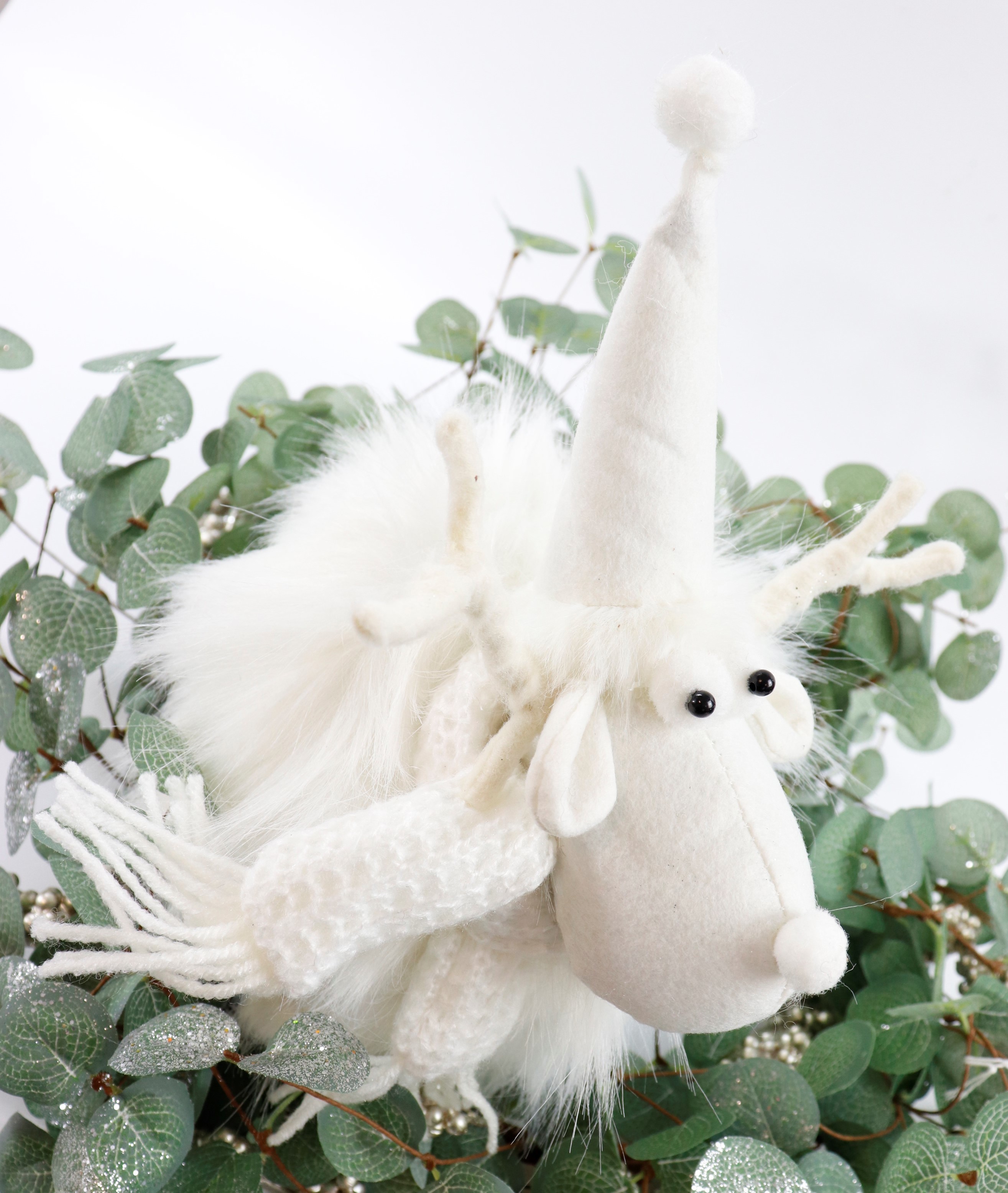 Die "Funny Moose"-Figur besticht durch ihr originelles Design, das die traditionelle Symbolik des Elches mit modernen Materialien verbindet. Mit einer Höhe von ca. 36 cm fügt sich diese dekorative Figur nahtlos in jede Wohnlandschaft ein und sorgt für eine stimmungsvolle Atmosphäre. Der Elch ist aus langlebigem Polyresin gefertigt, das für seine Widerstandsfähigkeit und detailgetreue Darstellung bekannt ist. Das hochwertige Kunstfell in strahlendem Weiß verleiht der Figur einen eleganten und gleichzeitig verspielten Touch, während die Akzente aus Holz und Metall für einen robusten, natürlichen Look sorgen.