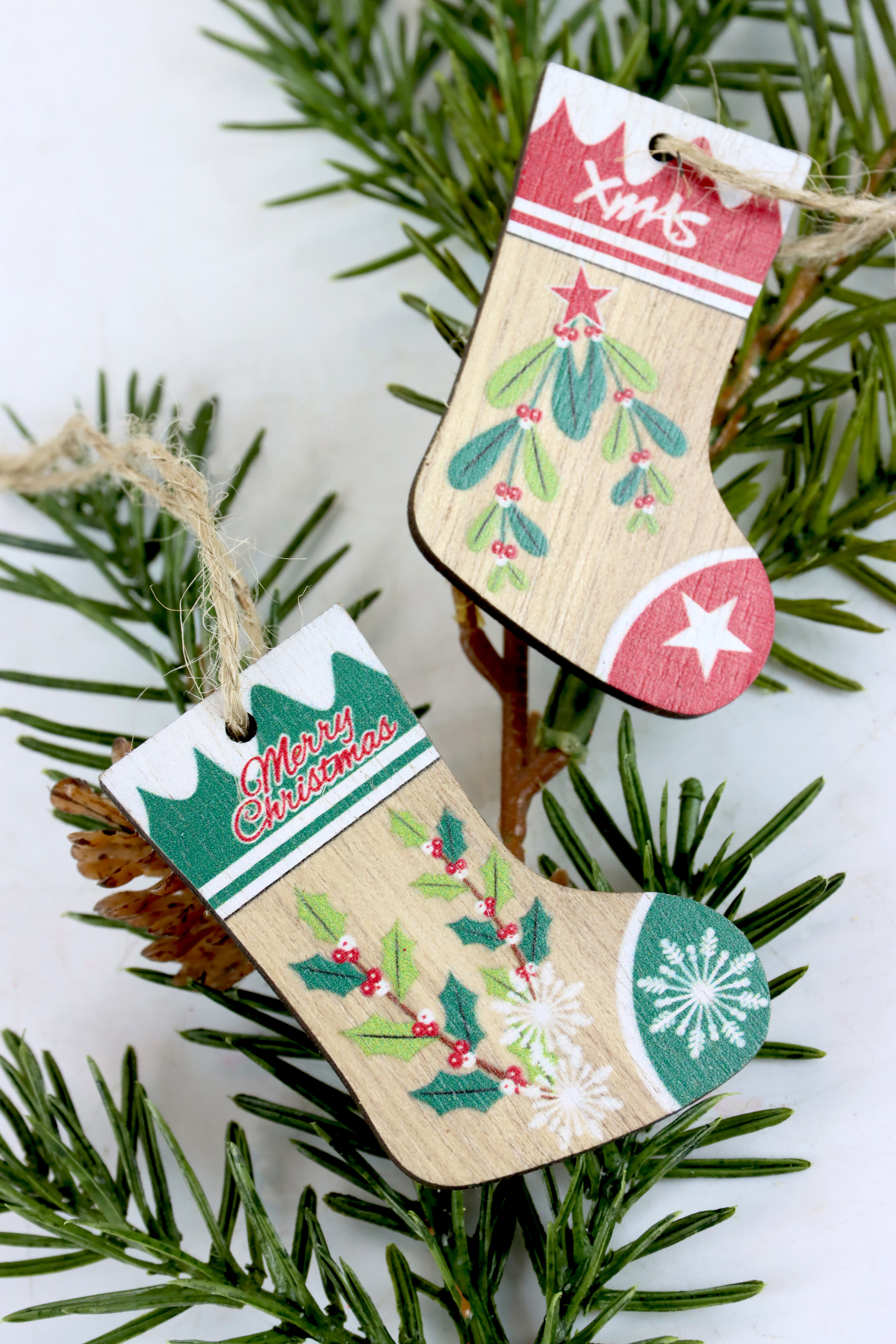 • Einzigartige Weihnachtsstiefel-Artikel aus Holz, ca. 6 cm groß