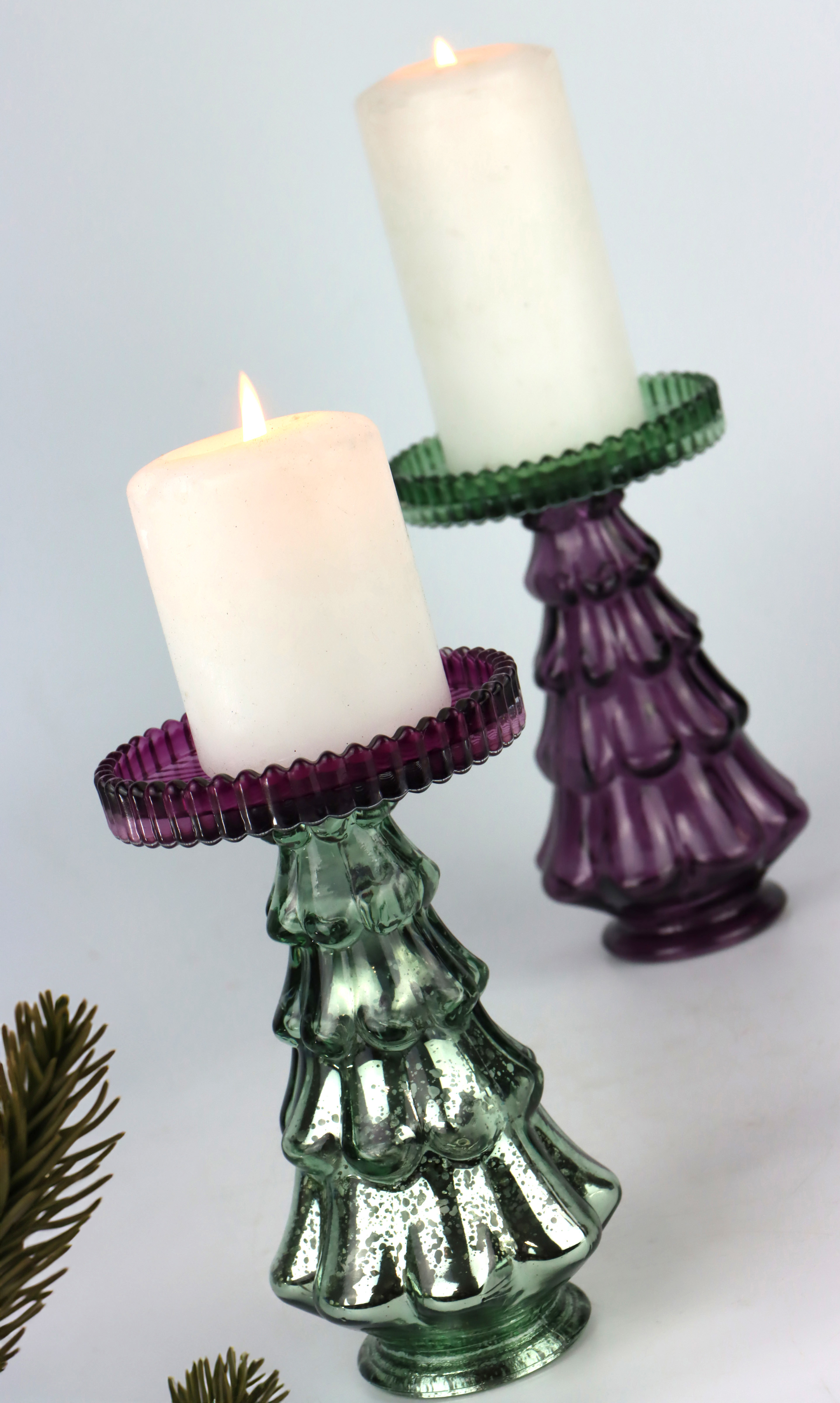 Unser zweiteiliges Leuchterset, gestaltet in den klassischen Weihnachts-Motiven lila und grün, fängt die Essenz der festlichen Jahreszeit ein und harmoniert wunderbar mit einer Vielzahl von Weihnachtsdekorationen. Die stilisierten Tannenbaum-Designs sind nicht nur ein optischer Hingucker, sondern vermitteln auch ein traditionelles, gemütliches Flair, das Kunden bei der Dekoration ihrer Wohnräume suchen. Dank der hochwertigen Verarbeitung sind die Leuchter dauerhaft und robust, ideal für den Einsatz über viele Weihnachtszeiten hinweg.