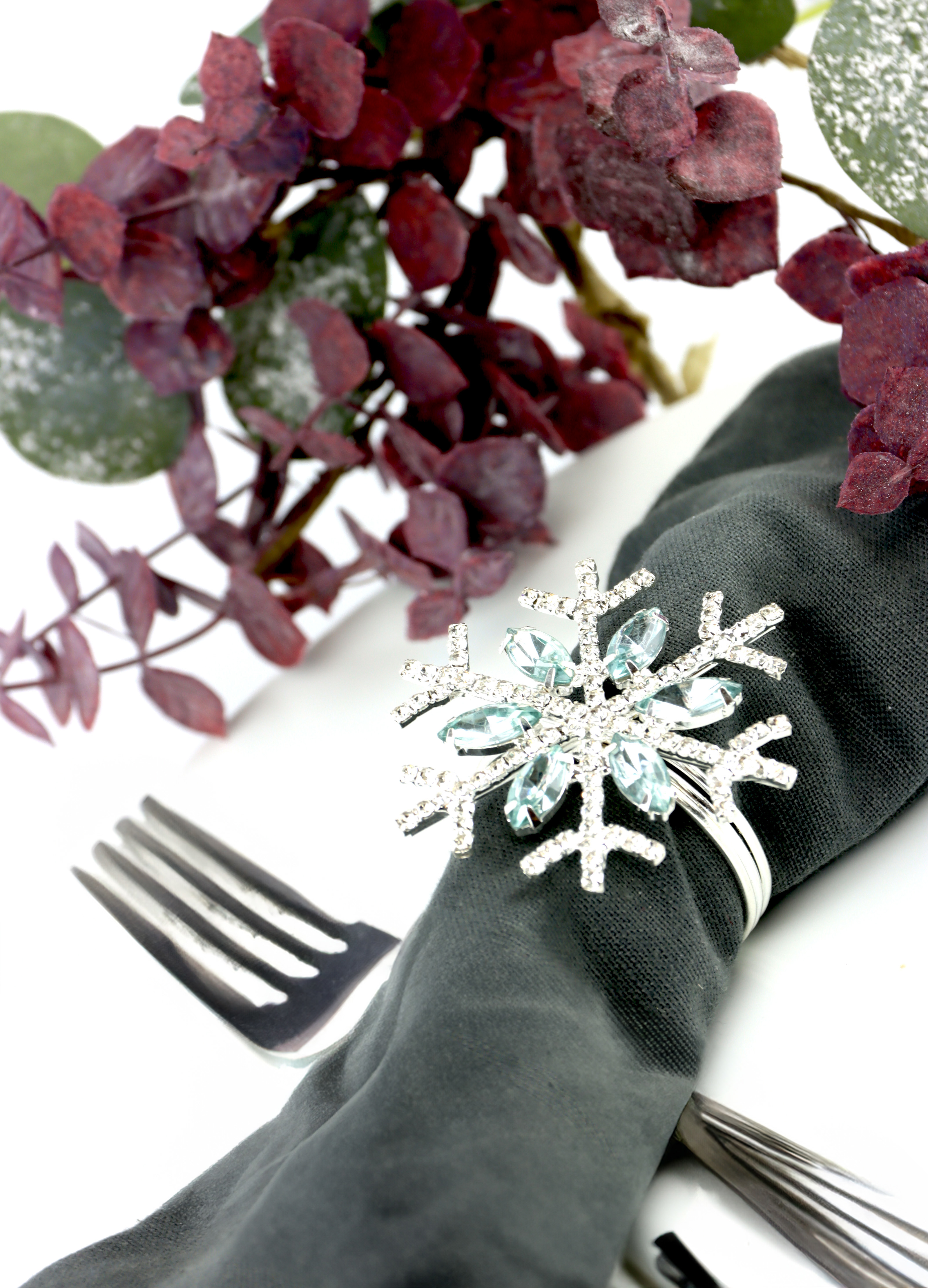 - Bezaubernde Serviettenringe in Schneeflockenform mit funkelnden Strassteinen