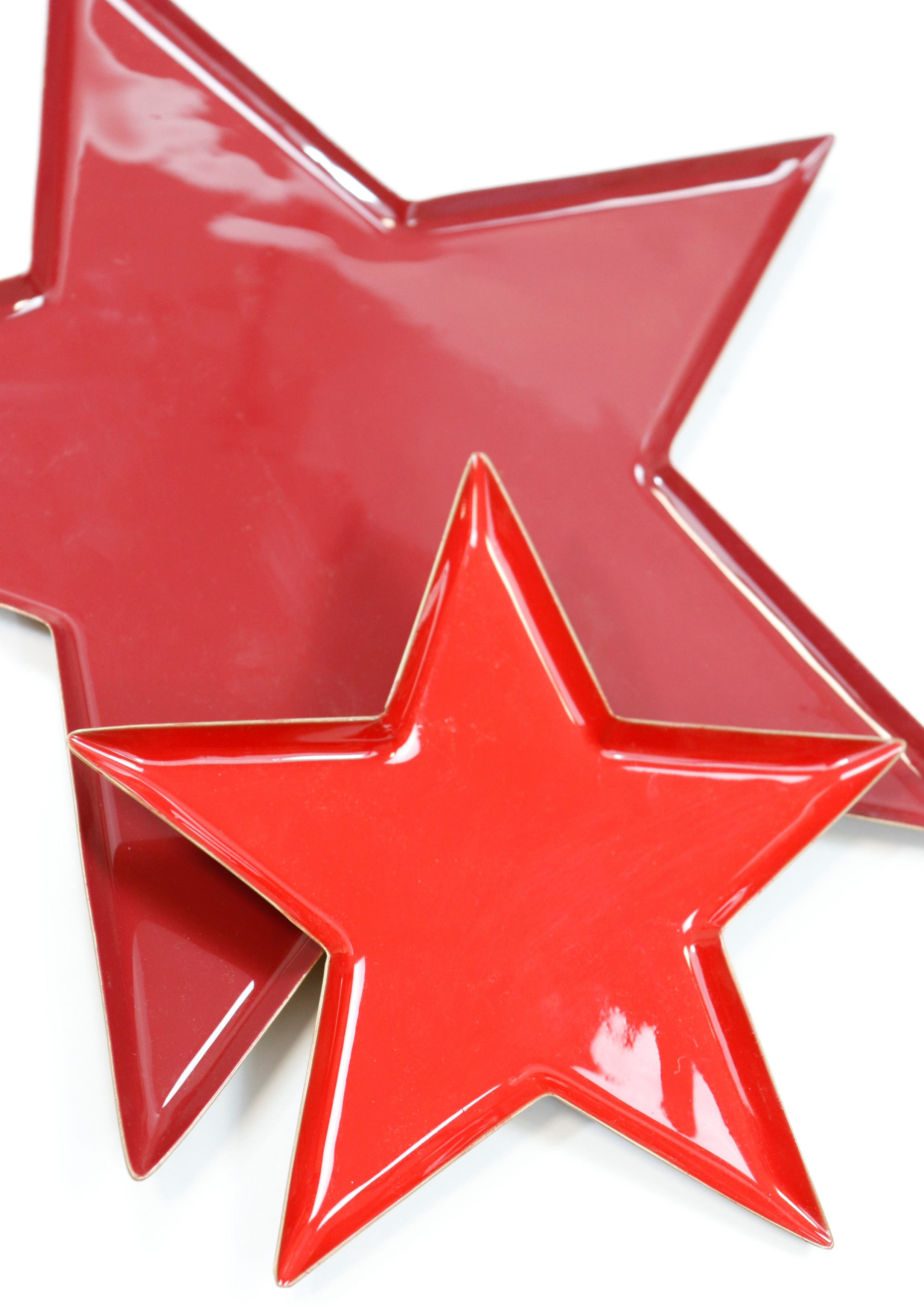 - Ein Set aus drei Sterntabletts in rotem Design, in den Größen 20, 28 und 38cm