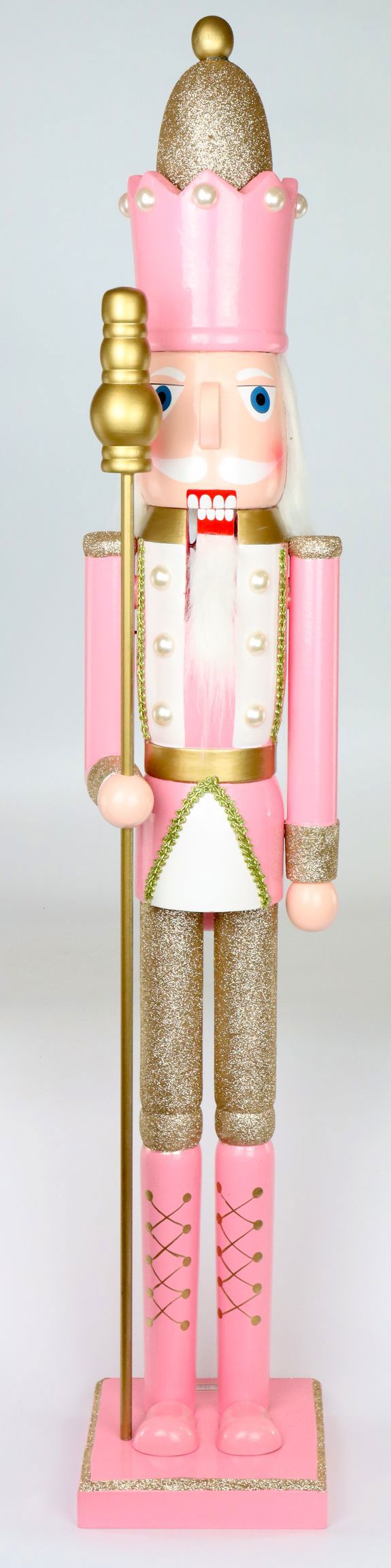DEEntdecken Sie den unvergleichlichen Deko Nussknacker "Holly Jolly" in Pink und Grün für die Weihnachtssaison. Mit seiner beeindruckenden Höhe von 90 cm, gestaltet aus hochwertigem Holz, wird dieser Nussknacker zu einem festlichen Highlight in Ihrem Laden und bringen den Weihnachtszauber in jeden Raum.