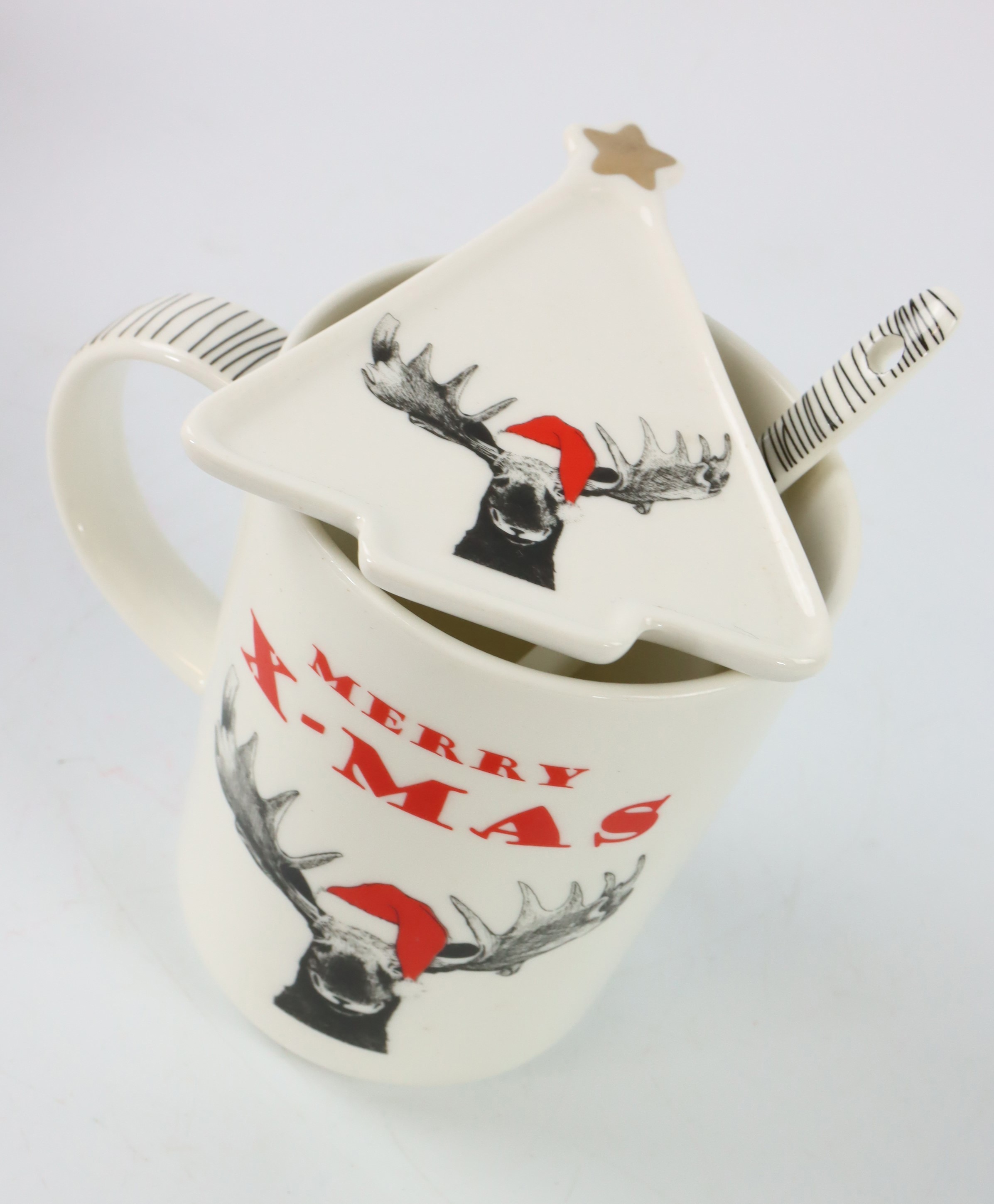 Entdecken Sie unser charmantes Geschenk-Set "Funny Moose" S/3, ein ideales Produkt für den stationären Einzelhandel im Bereich Wohnen und Lifestyle. Dieses dreiteilige Set verkörpert pure Weihnachtsfreude und besteht aus einer Tasse, einem Tannenbaumteller und einem Löffel, alles kunstvoll aus hochwertigem Porzellan gefertigt. Die liebenswerten Weihnachtselch-Motive verleihen diesem Set seinen besonderen Charme, der Ihre Kunden zur Weihnachtszeit begeistern wird.