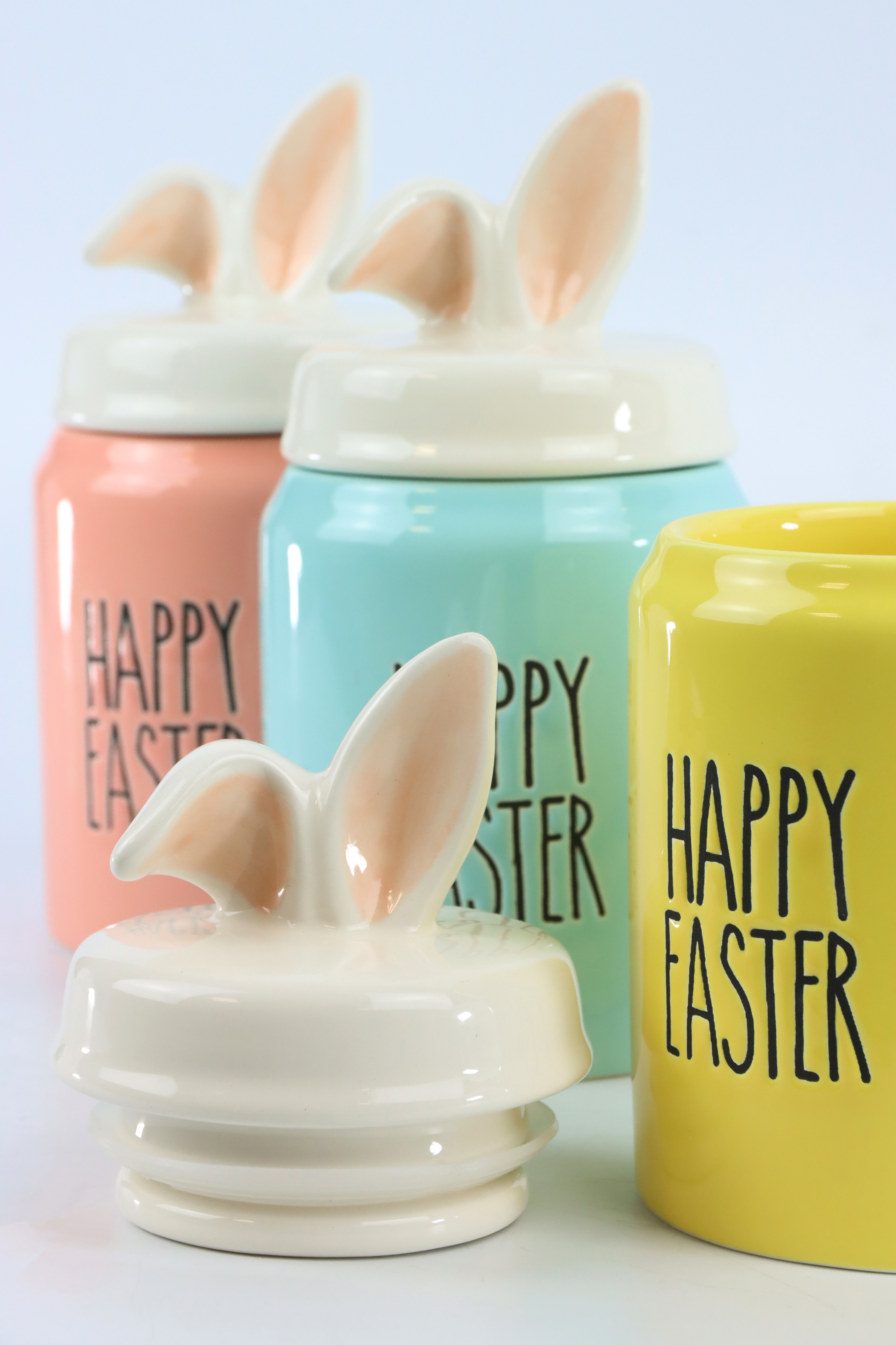 Entdecken Sie das bezaubernde 3-teilige Set "Deckeldosen Candy Easter" – die perfekte Ergänzung für Ihren stationären Einzelhandel im Bereich Wohnen und Lifestyle. Besonders zur Osterzeit bringen diese eleganten Keramikdosen mit einer Höhe von ca. 17,5 cm einen Hauch von Fröhlichkeit und Charme in das Zuhause Ihrer Kunden. Ob als dekorative Elemente im Wohnzimmer, als praktische Helfer in der Küche oder als zuverlässige Aufbewahrungsmöglichkeit im Esszimmer, diese Deckeldosen erfüllen nicht nur verschiedene Funktionen, sondern verkörpern auch ein ansprechendes Design, das die Saison der Erneuerung und Freude feiert.