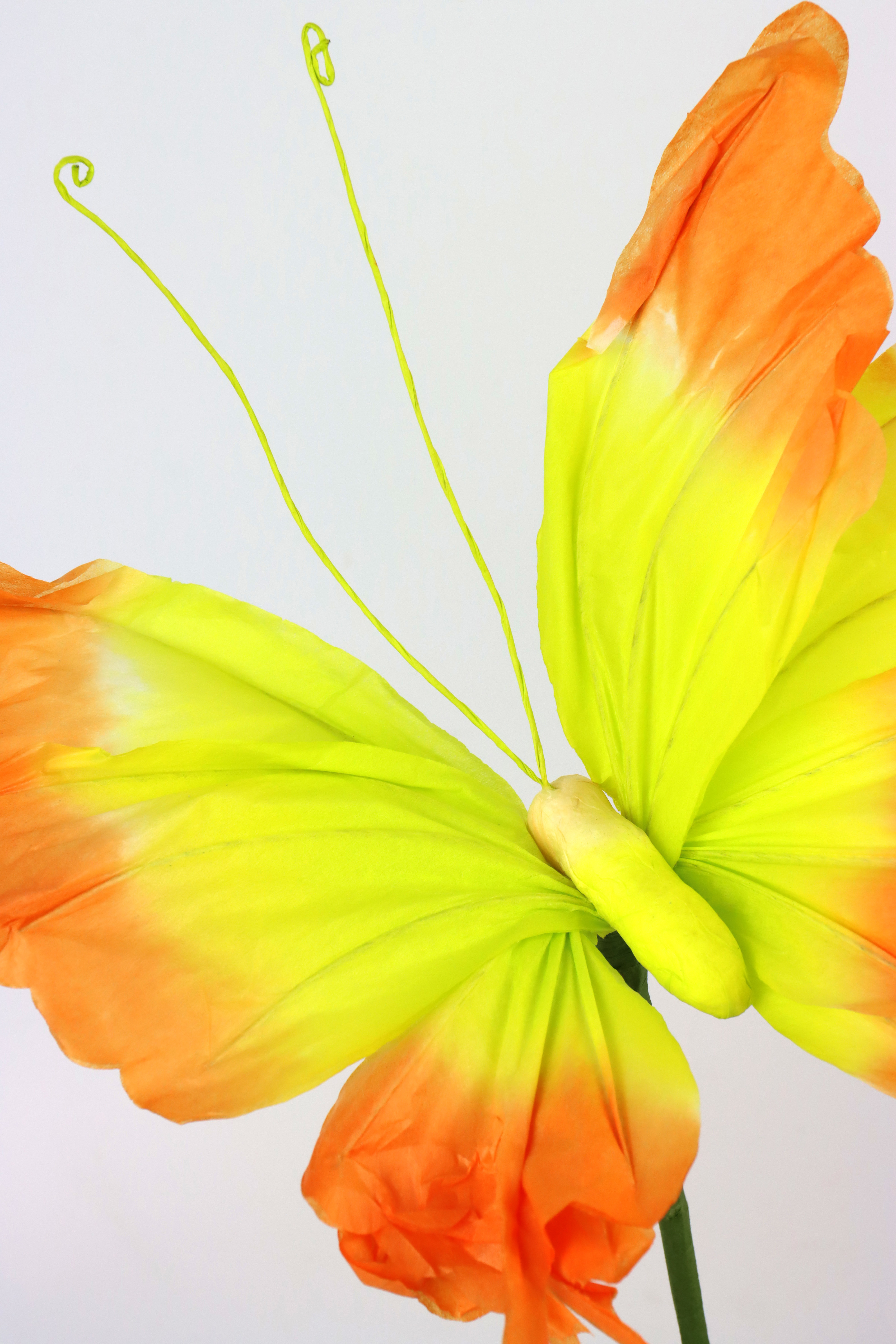 - Vier dekorative Schmetterlinge aus Papier und Eisendraht