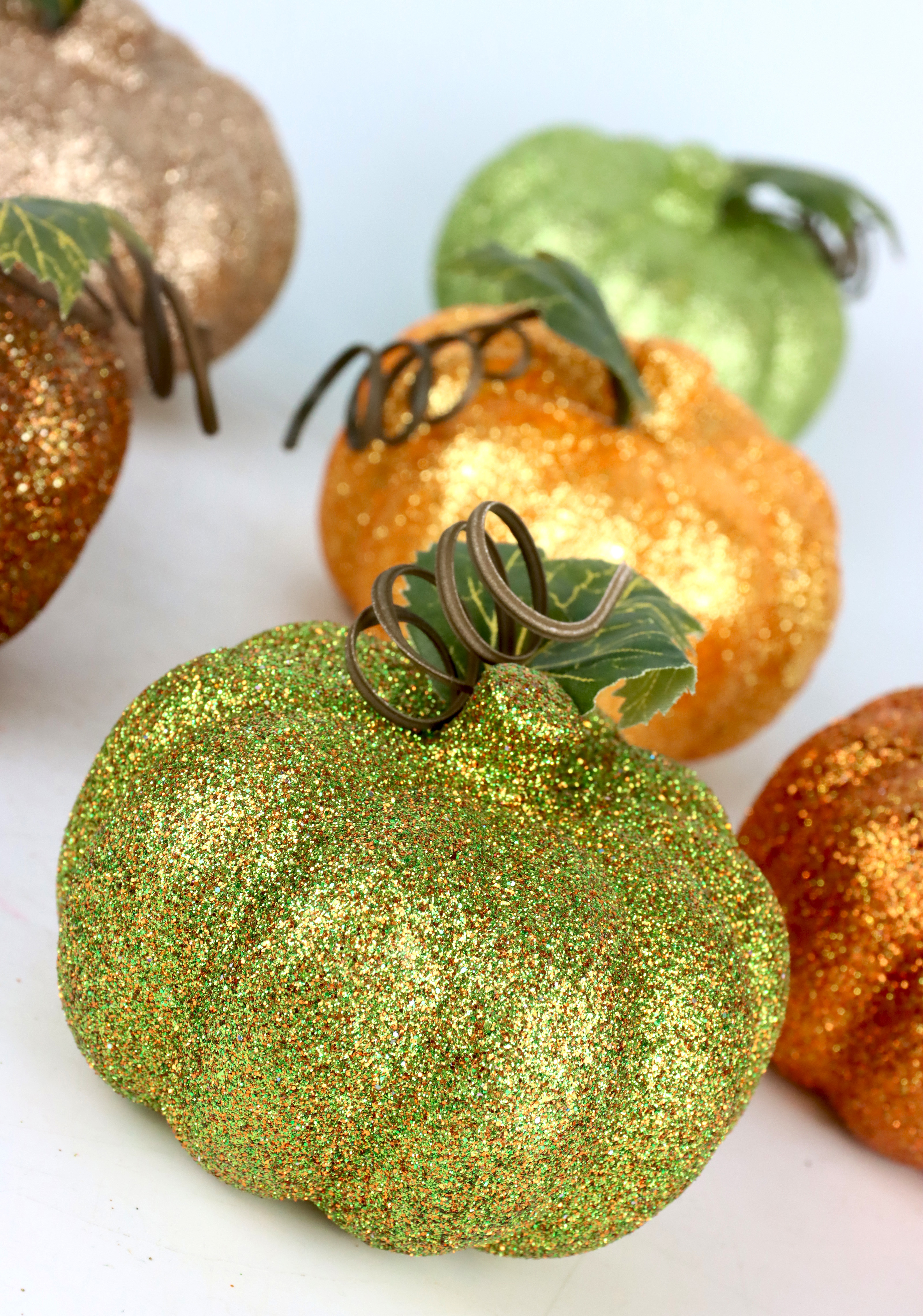 - Die Kürbisse kommen in einer Mischung aus Herbstfarben und glitzern für einen zusätzlichen visuellen Reiz