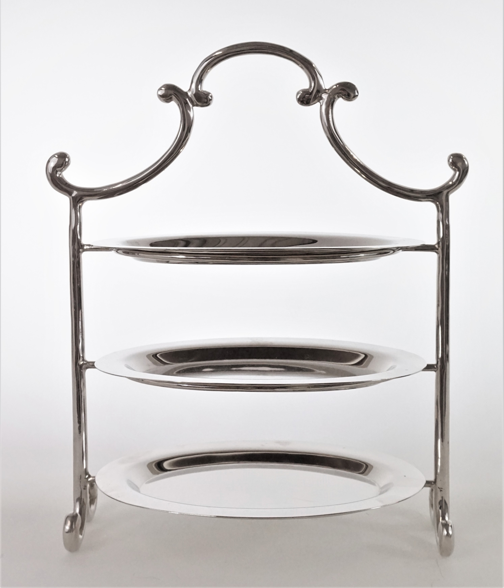 Discover the timeless beauty and functionality of the ETAGERE "CLASSICO". With its elegant silver design, this three-tier etagere not only perfectly showcases your culinary creations, but also enhances any ambience. Whether for the home or lifestyle retail sector - the "CLASSICO" etagere is the ideal product to enrich your customers' shopping experience.