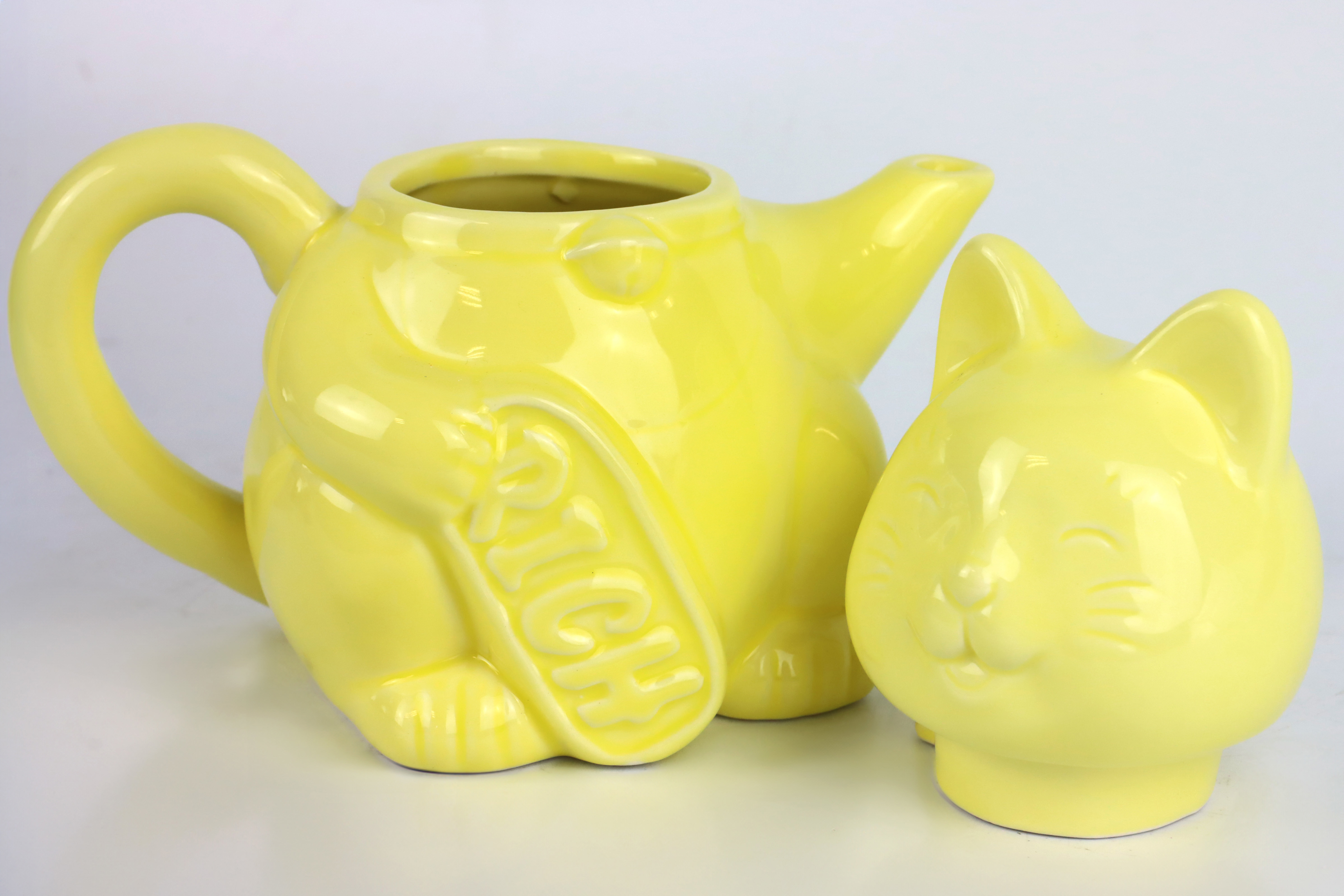 - Bright yellow with a popular cat motif, which is a symbol of luck and prosperity
