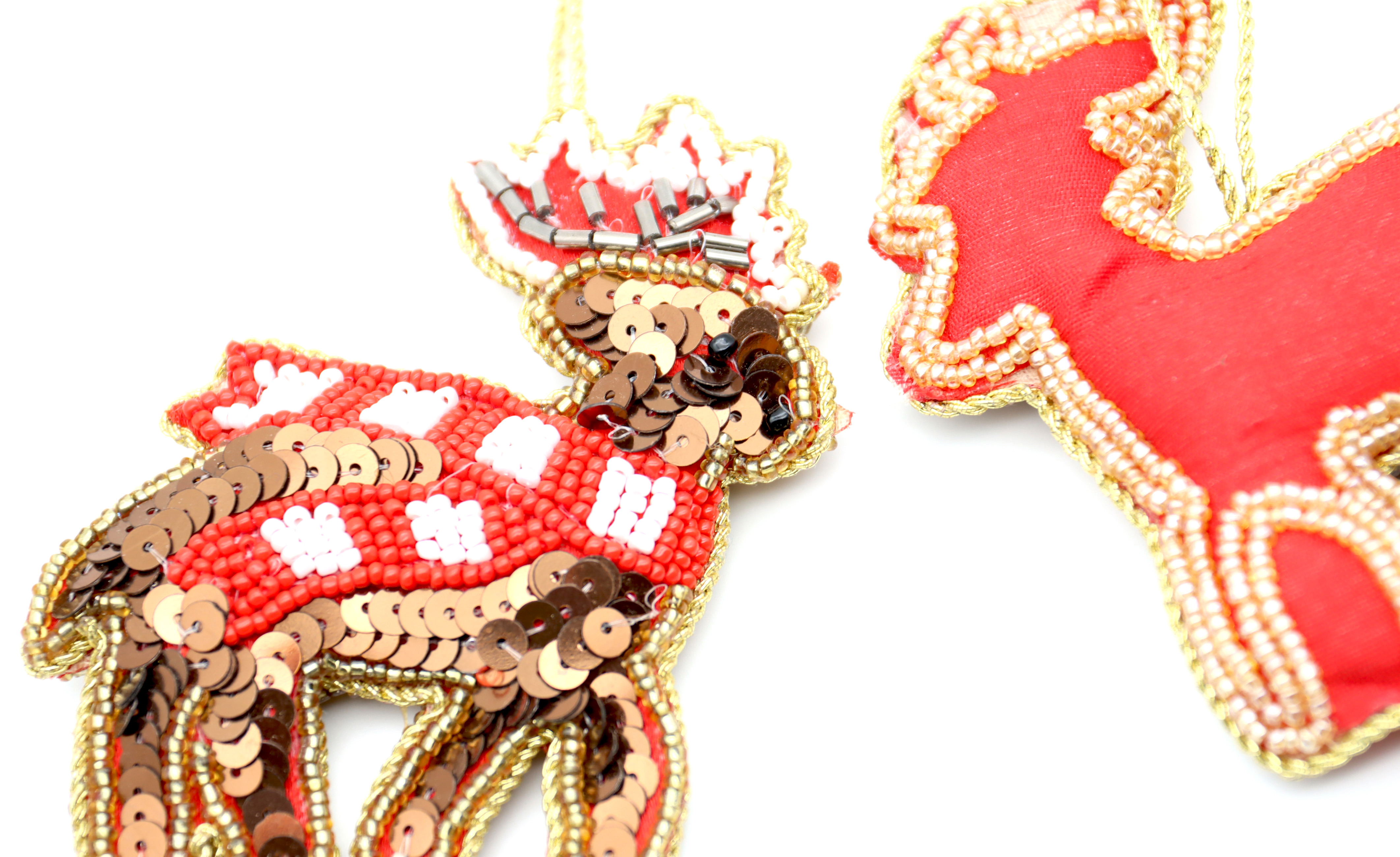 The festive magic of the winter season is only complete with the right decorative elements. Our exclusive "XMAS-DEERS" bead hanger set brings this magic to any room and tells a story of elegance and cosiness. These handmade bead hangers in a set of four detailed reindeer are the perfect decoration to adorn your Christmas tree, windows or gifts in a unique way. The use of high-quality sequins in warm brown and red tones gives these reindeer ornaments a luxurious yet rustic charm, in keeping with the Christmas atmosphere.
