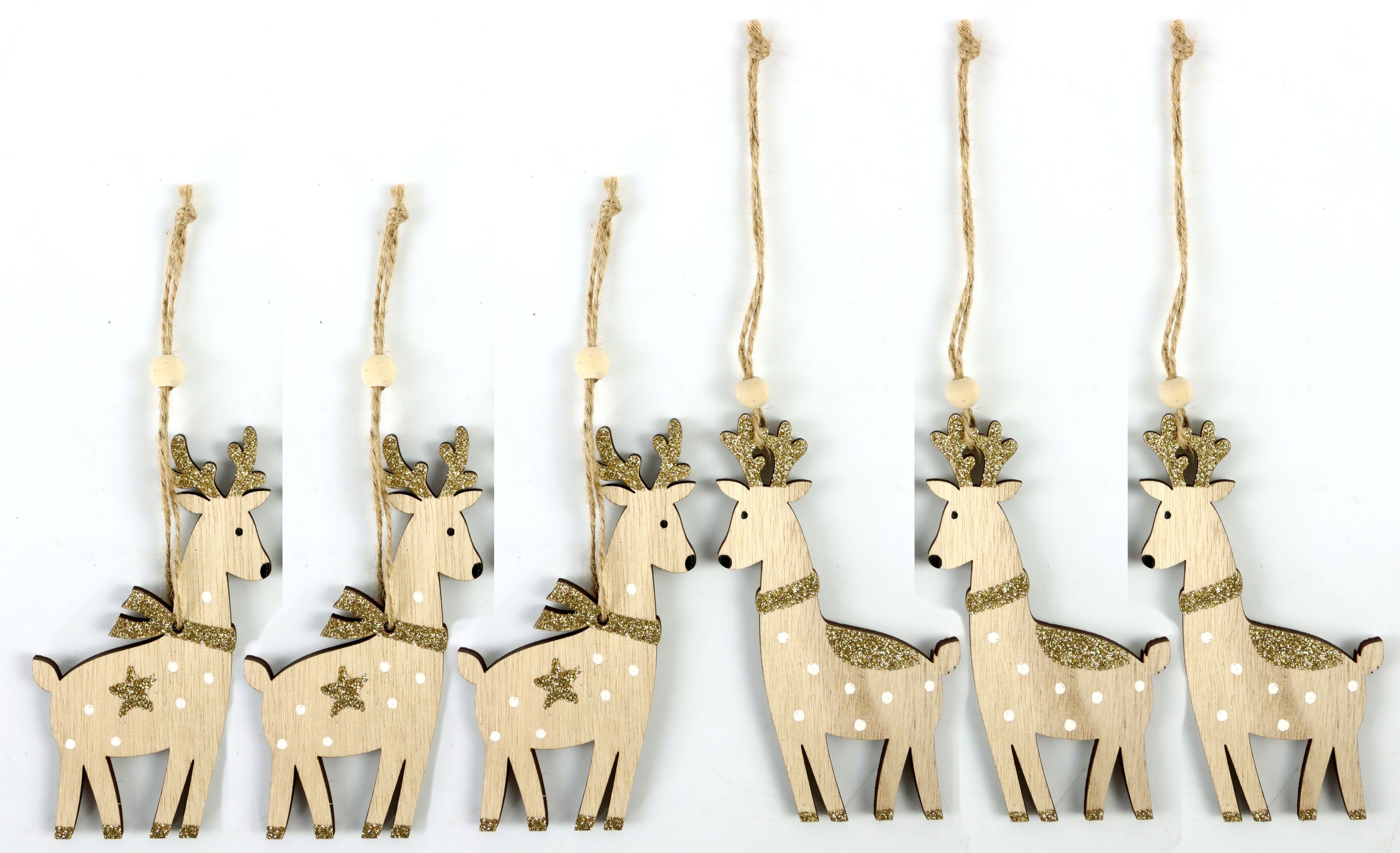 ENExperience the magic of the festive season with our "DEERS" ornamental hanging set! This beautiful six-piece set offers a unique way to festively decorate your retail space while creating a warm, inviting atmosphere. Our ornamental hangers are made from high-quality wood and are impressively detailed. Measuring 11 cm tall, the deer are perfectly proportioned to be displayed on Christmas trees as well as in shop windows or as part of themed decorations.