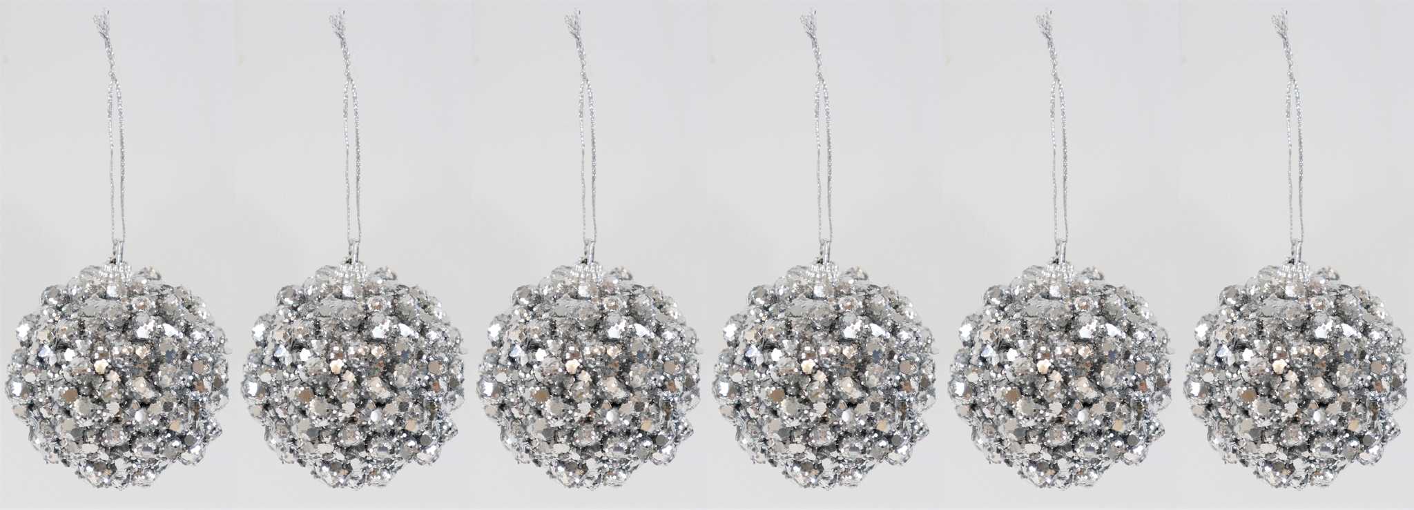 ENDiscover the "SPARKLE" set with six Christmas baubles with our article number 2403. These are exclusive decorative items that make every Christmas special. The stylishly designed baubles are made from high-quality polystyrene plastic in an elegant silver colour and will not only add a sparkling highlight to your Christmas tree, but also to your entire winter living room decorations.
