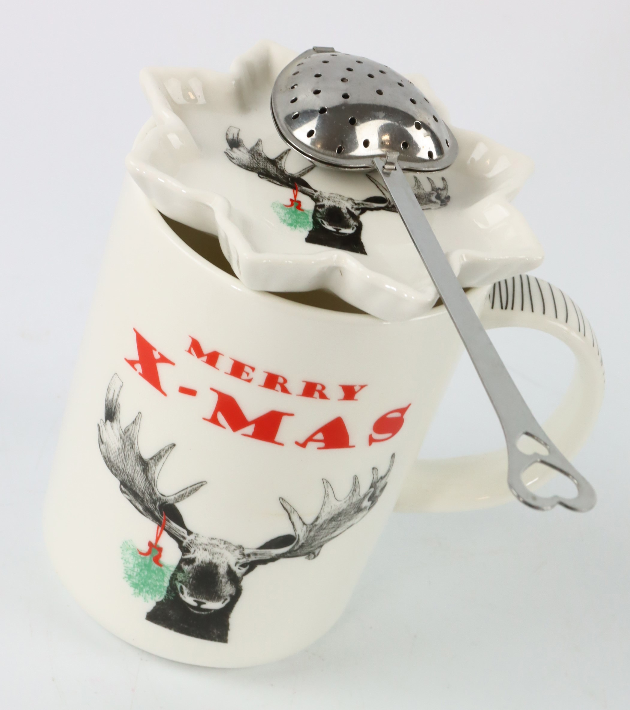 The "Funny Moose" gift set consists of a charming mug, a decorative star-shaped plate and a unique tea strainer made of high-quality porcelain. These lovingly designed and coordinated components are characterised by their funny moose design, which blends harmoniously into any Christmas decoration. The mug and star plate are ideal for cosy breakfast moments or afternoon tea, while the practical tea strainer is a stylish addition to the tea experience. With a height of approx. 11.5 cm, all items are packaged in an attractive gift box, making the set a perfect gift option.