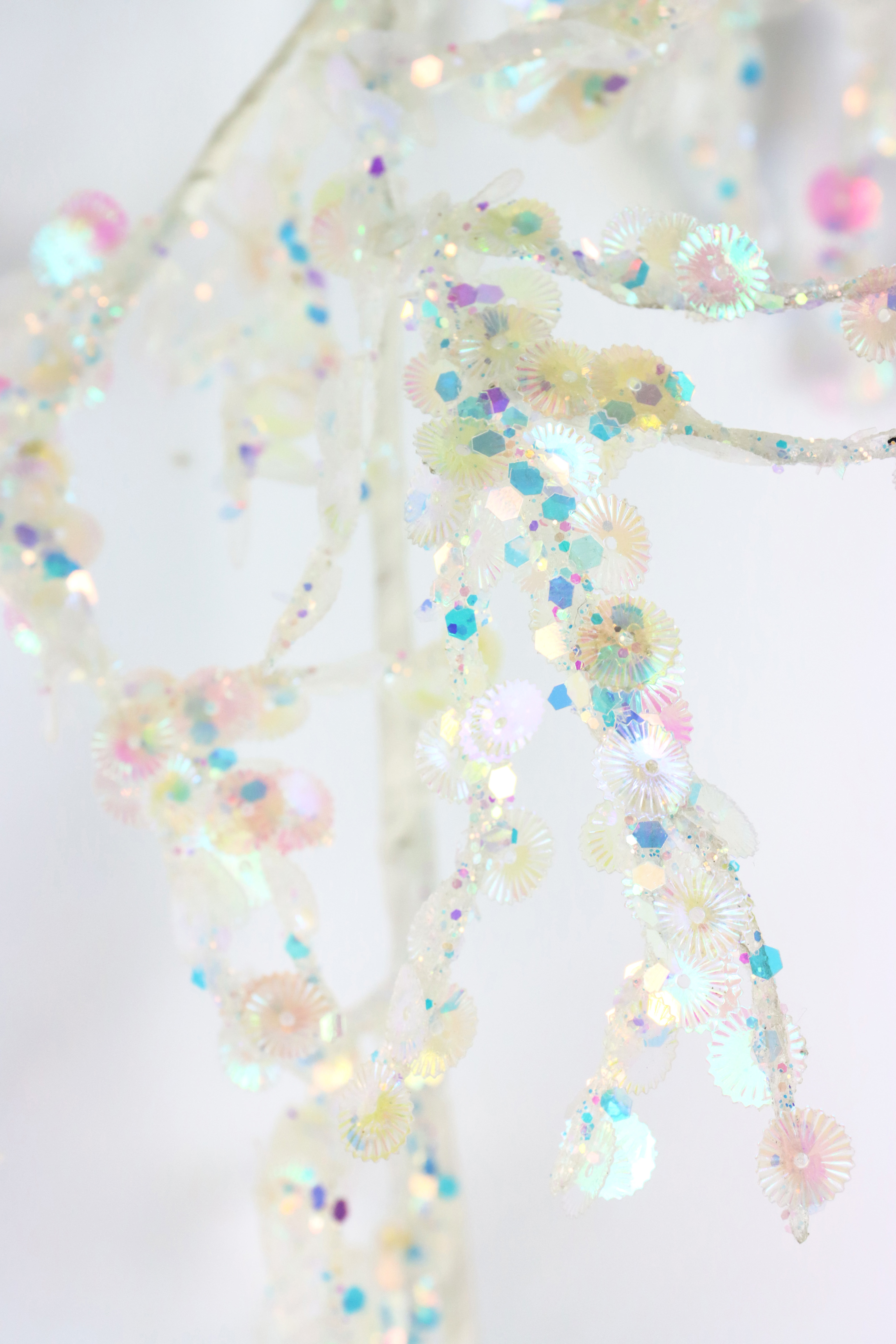 The "ICE CRYSTAL" garland branch stands for ultimate quality and exquisite design. The attention to detail is reflected in every ice crystal that adorns the branch. This captures the frost-covered look of the Christmas season while conveying a chic, modern flair.