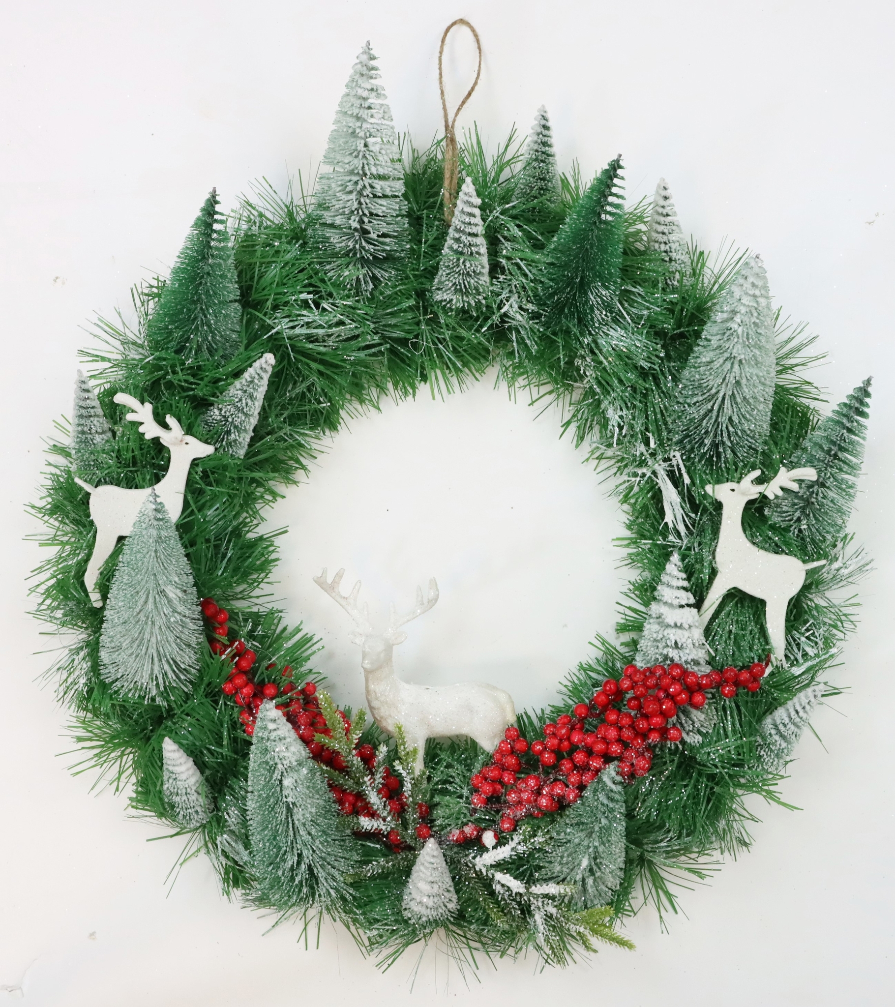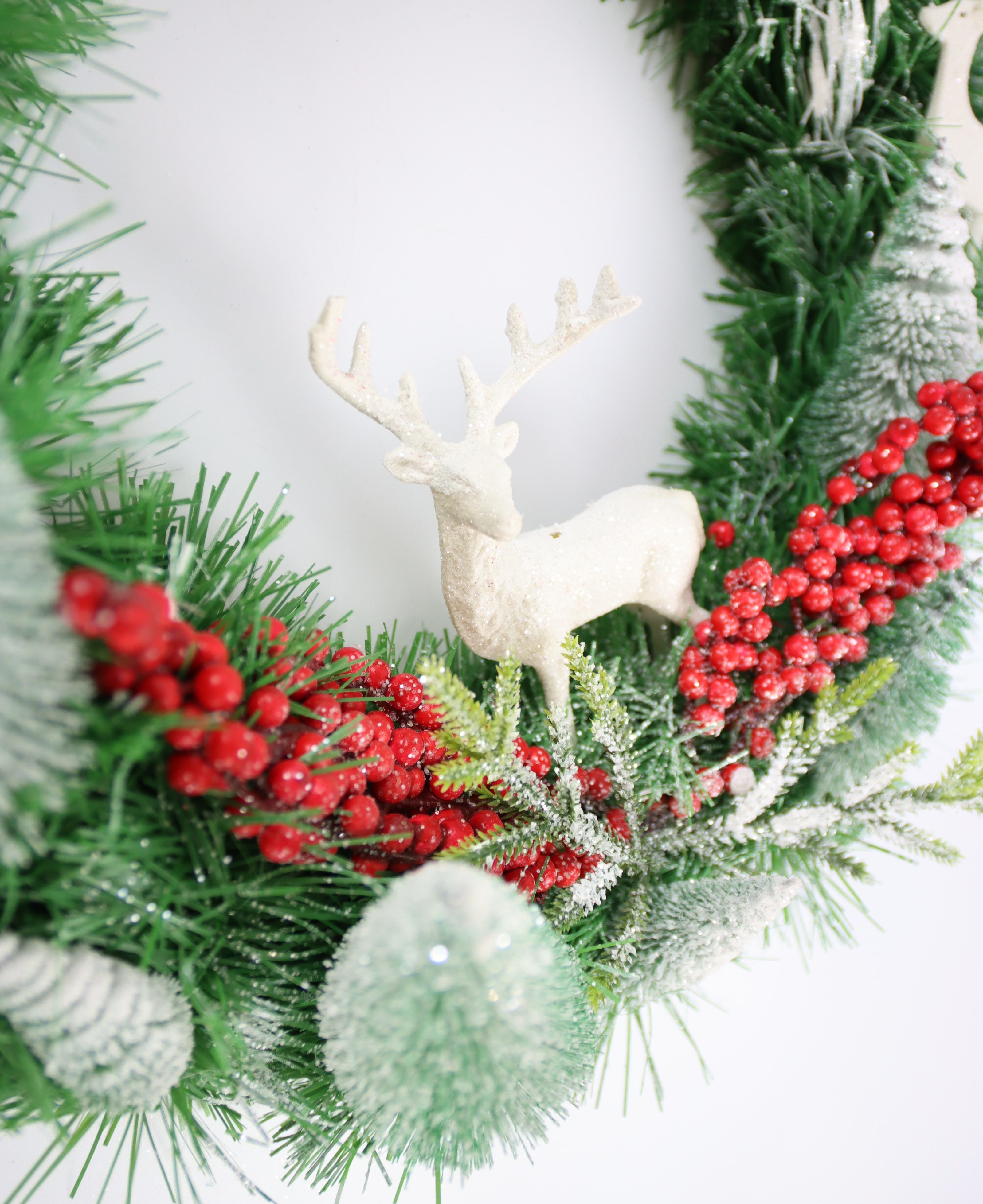 - Stylish Christmas wreath with deer motifs, ideal for stationary retail