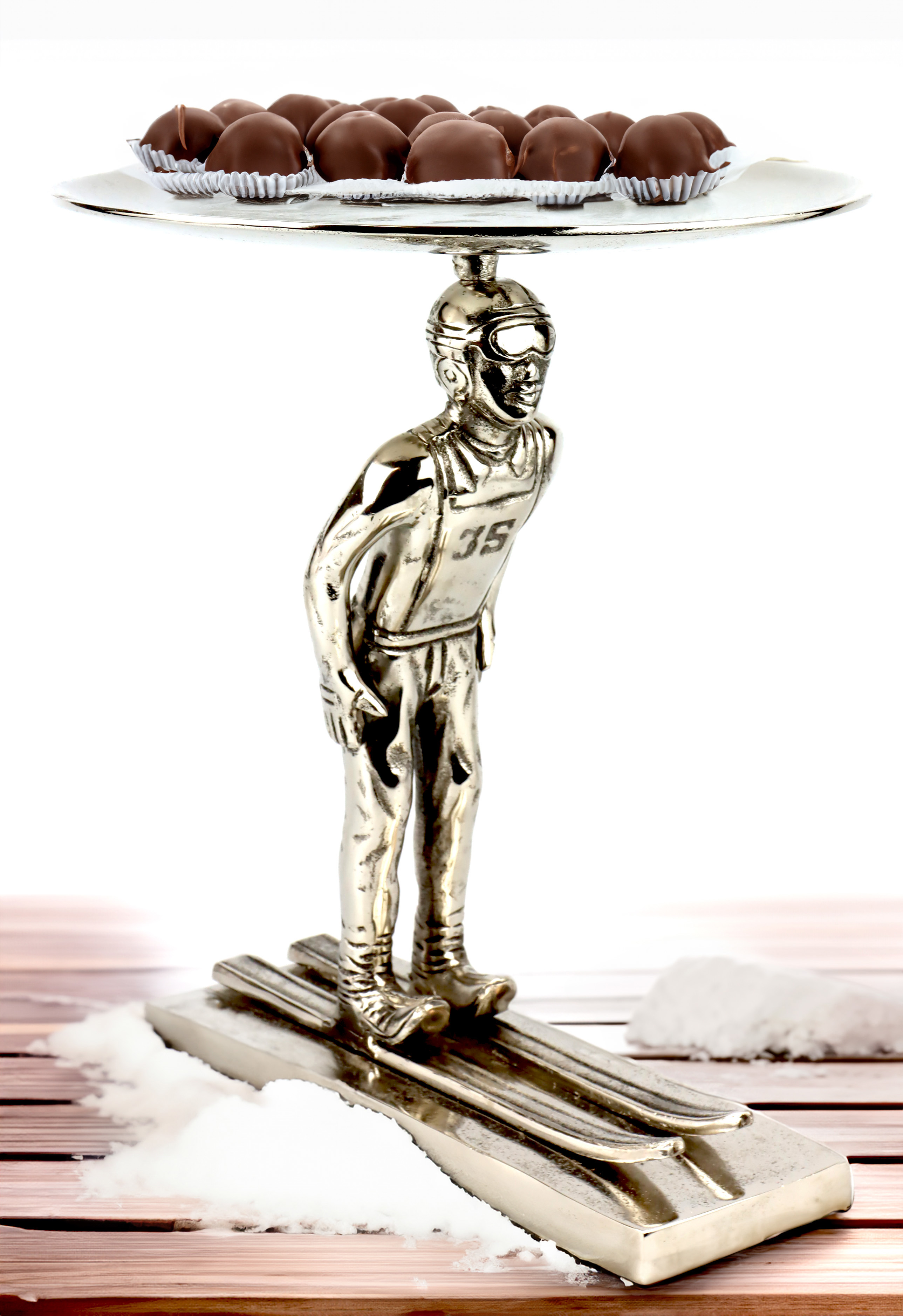 The decorative ski jumper, which is modelled in great detail on this trophy plate, symbolises elegance and sportiness. With an impressive size of approx. 35 cm, the "Gipfelglanz" trophy plate radiates both power and grace, making it the perfect highlight for any event or for a special place in a retail shop window.