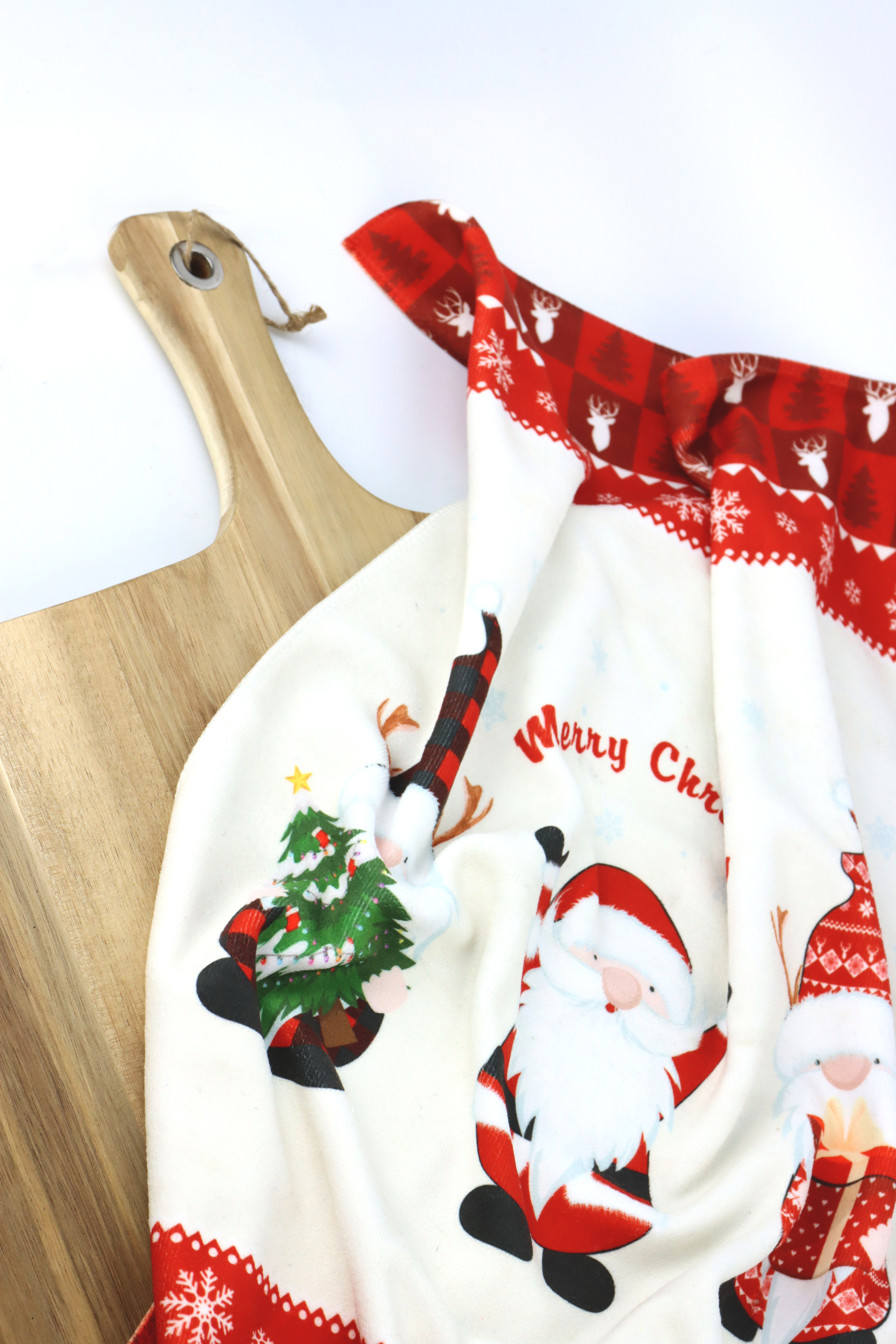 The wooden board is accompanied by a festive kitchen towel which, with its Christmassy design and dimensions of 40x60 cm, is not only practical but also a visual highlight. Made from high-quality cotton, it promises durability and comfort when drying dishes or wiping up small mishaps that can easily happen when cooking. The design of the kitchen towel fits in perfectly with the festive season and blends harmoniously with seasonal decorations.