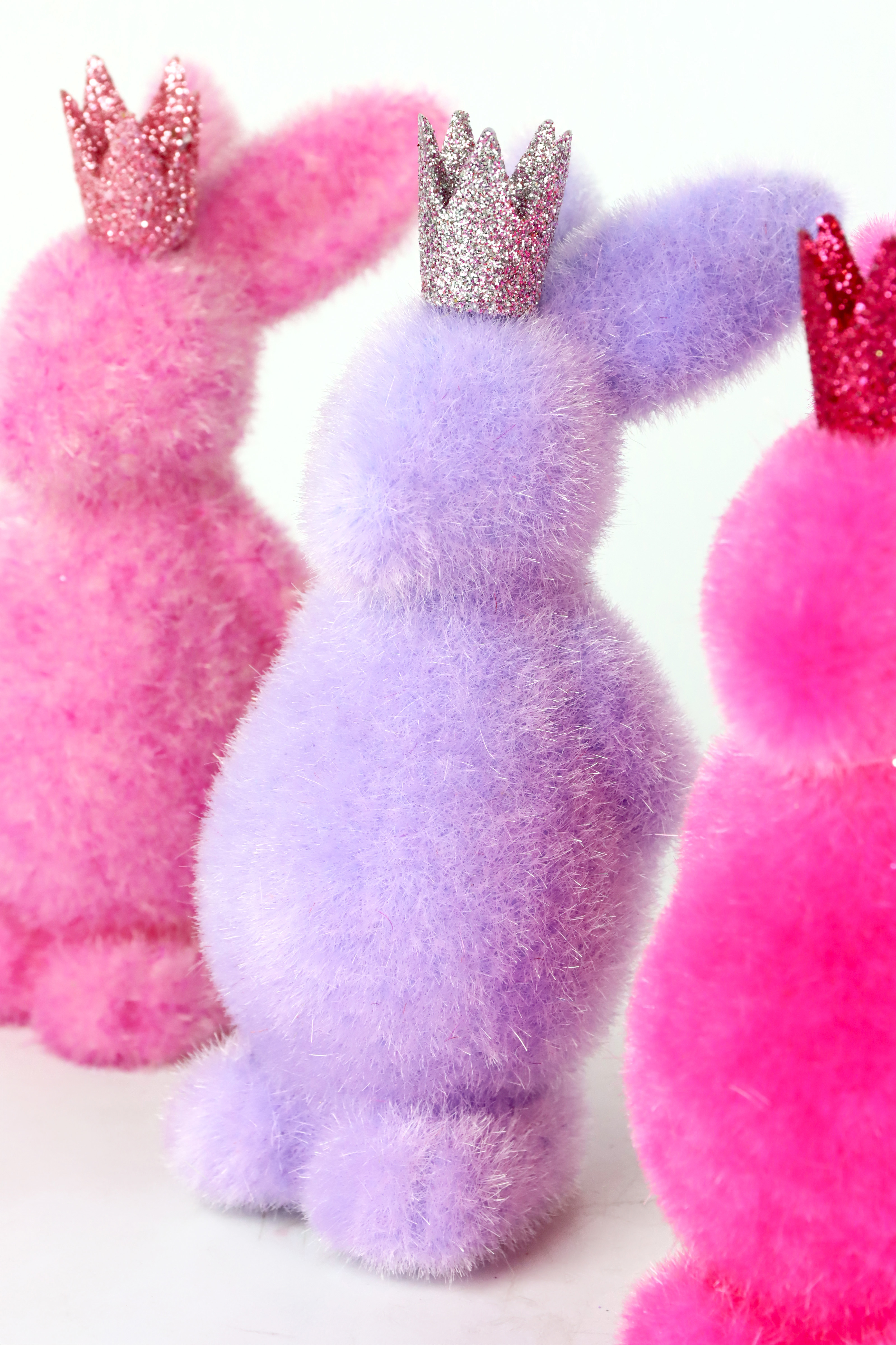 Discover the enchanting 3-piece bunny set "BUNNY FLOCAGE" for Easter - a stylish accessory for stationary retail in the home and lifestyle sector. This charming bunny set, consisting of three skilfully crafted bunny figures in vibrant shades of pink and purple, is the perfect eye-catcher for your spring and Easter collection. Made from high-quality plastic, the bunnies feature a fine flocage surface that gives their look a velvety texture. With a height of approx. 23 cm, the bunnies are ideal for creating colourful and inviting decorations in shop windows, on shelves or on counters.