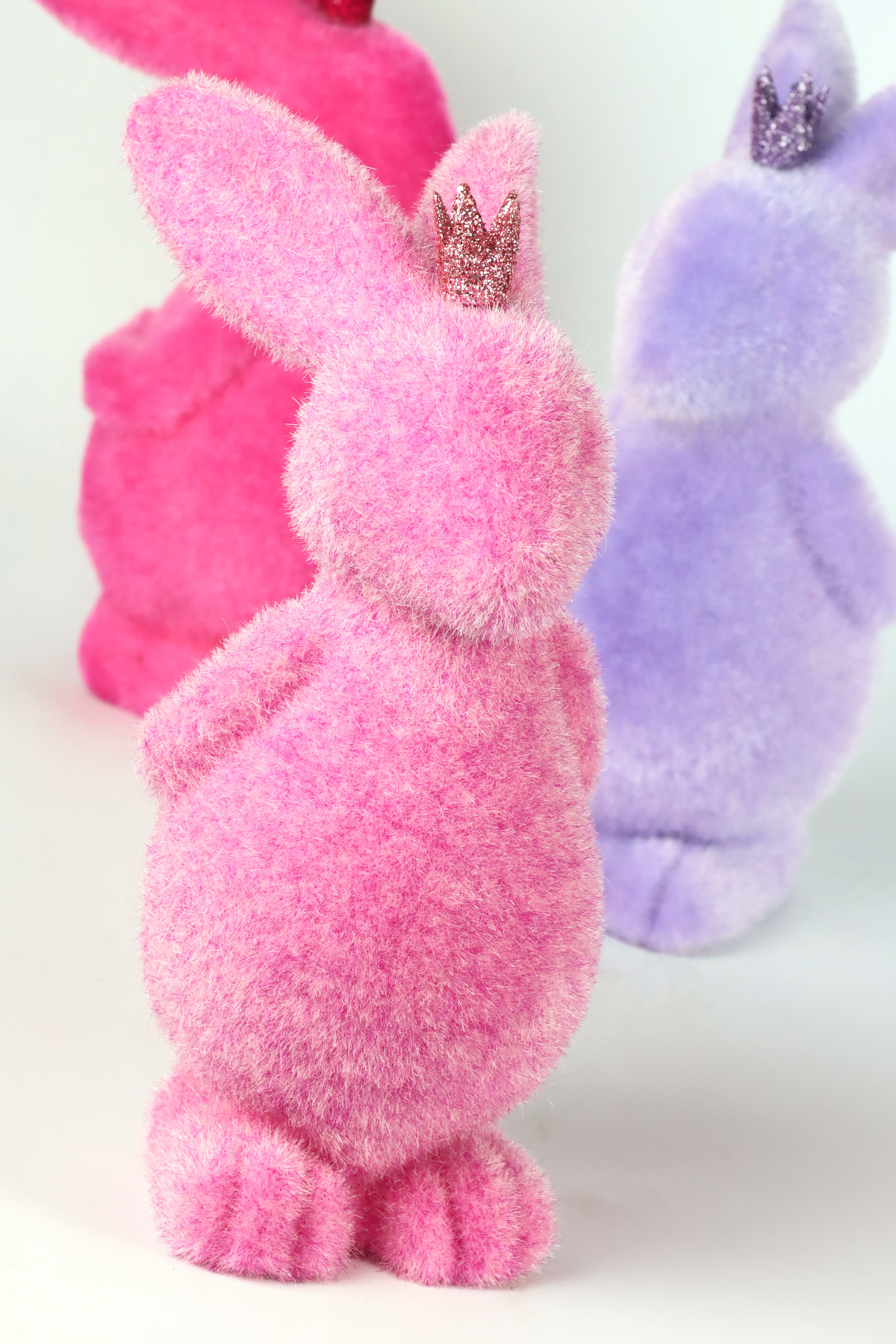 EN### Product description: Bunny set "FLOCAGE" S/3 - Easter decoration in pink and purple