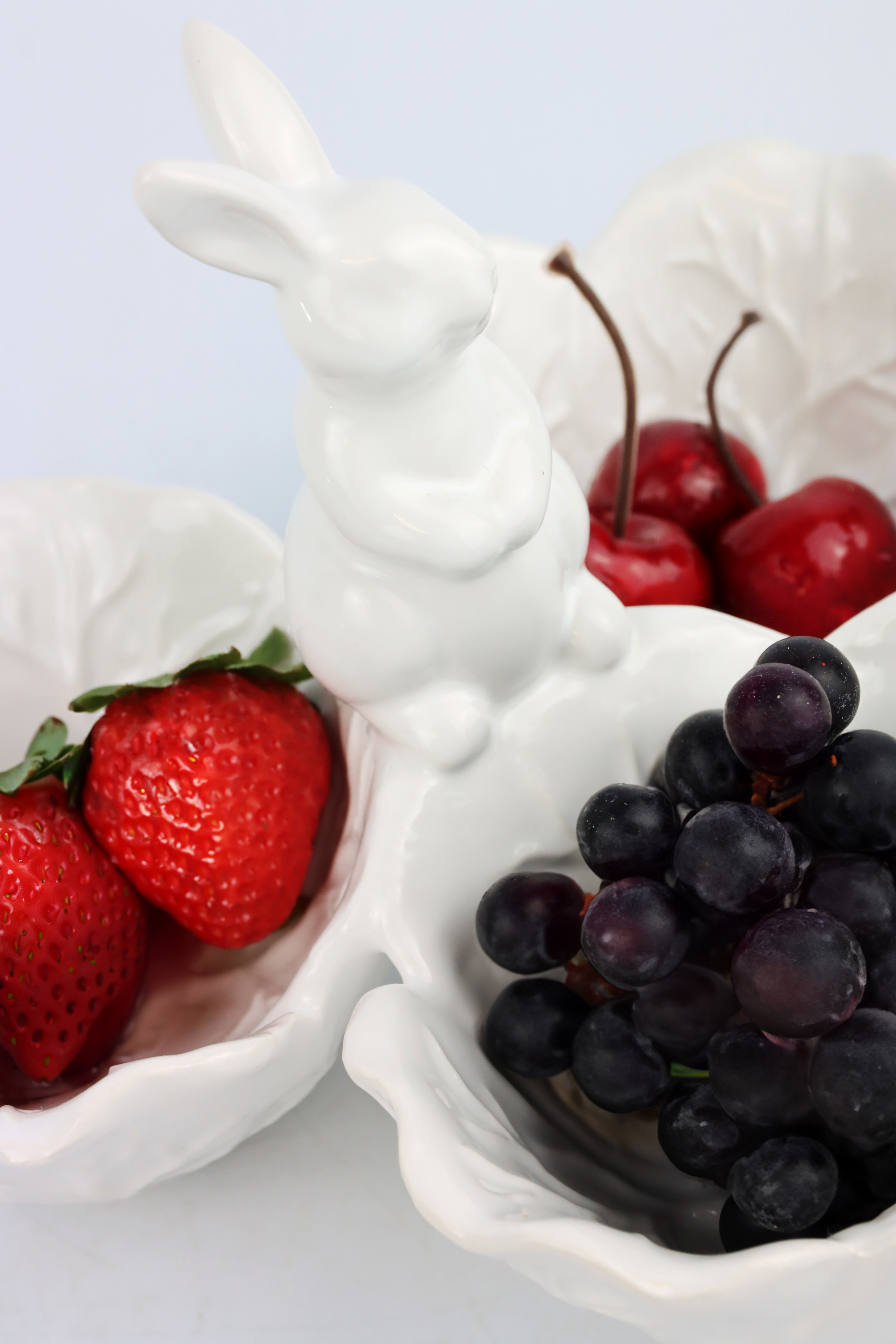 **Trio of "White Cabbage" bowls with ceramic bunny motif - The perfect Easter decoration for retail**