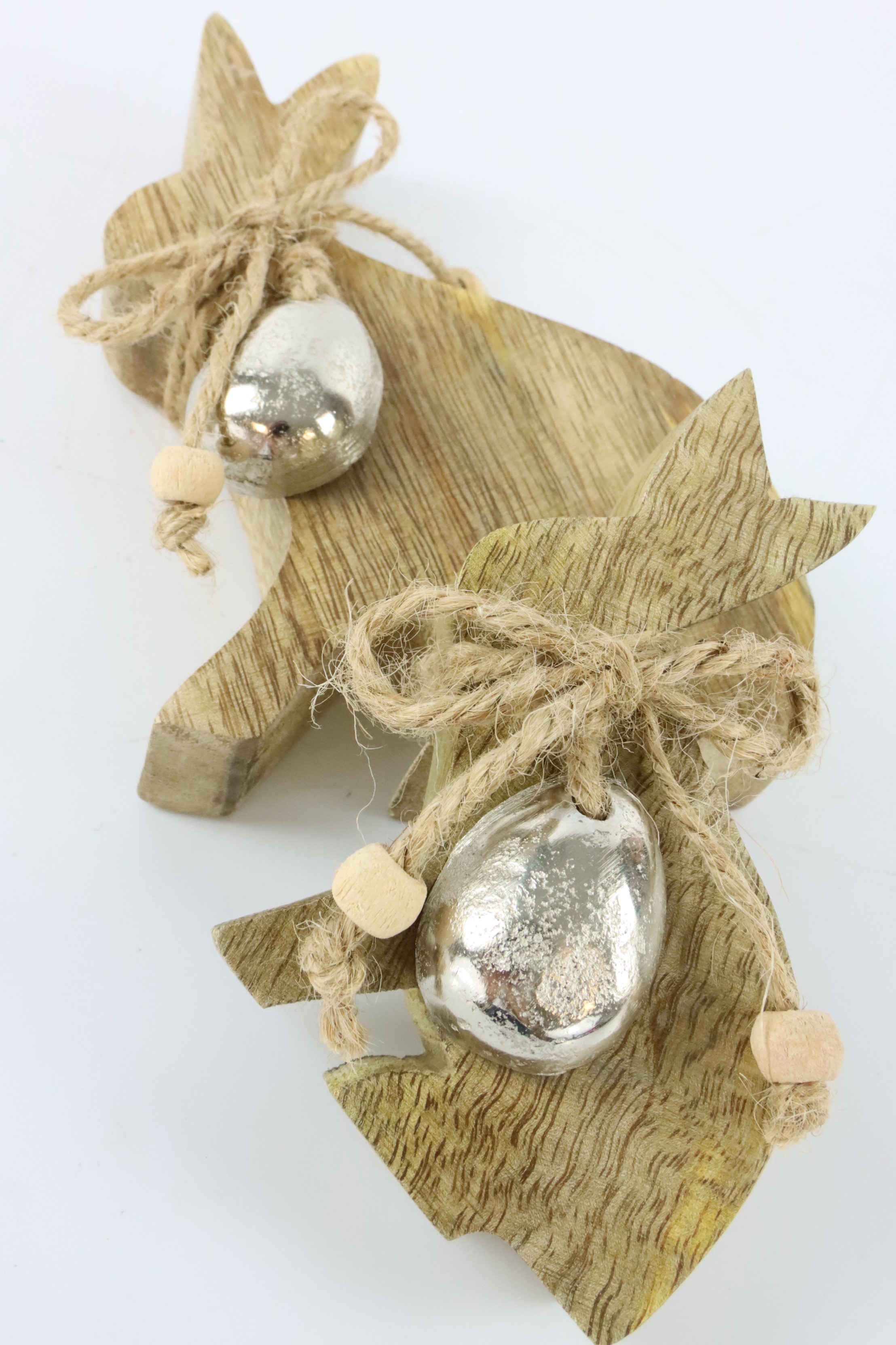 The durable mango wood from which the set is made not only guarantees robust quality, but is also a sustainably produced and environmentally friendly option for environmentally conscious customers in the retail sector. In return, we offer you a high-quality finish and timeless design that can be perfectly combined with other products in your collection. In addition, the gently curved lines and the finely crafted surface of the bunny figurines ensure that they are real eye-catchers that arouse emotions and put your customers in an Easter mood.