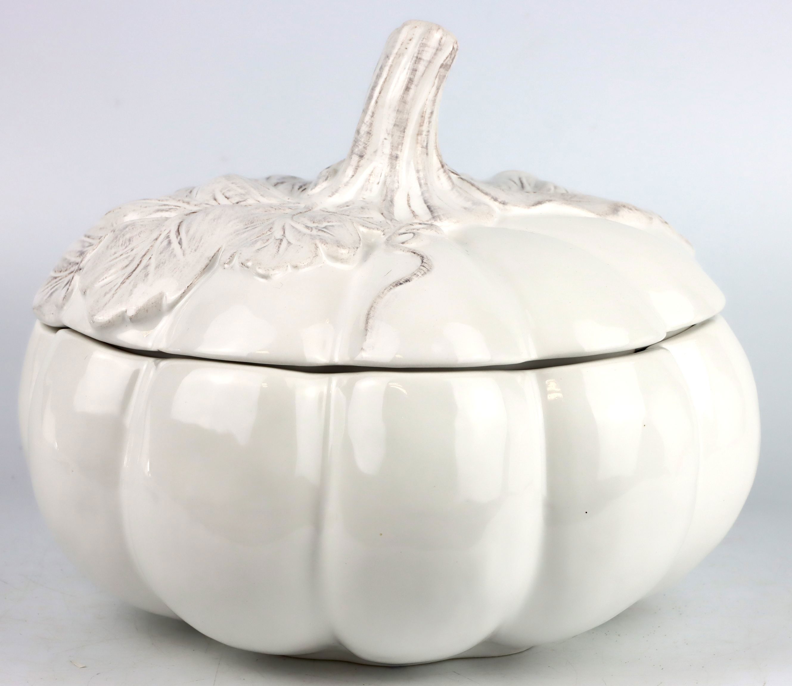 It impresses with its expressive design: a white pumpkin adorns the tureen and is the absolute highlight. The finely crafted details of this handmade tureen give it an individual, artistic charm. It radiates a naturalness and elegance that enriches any decor.