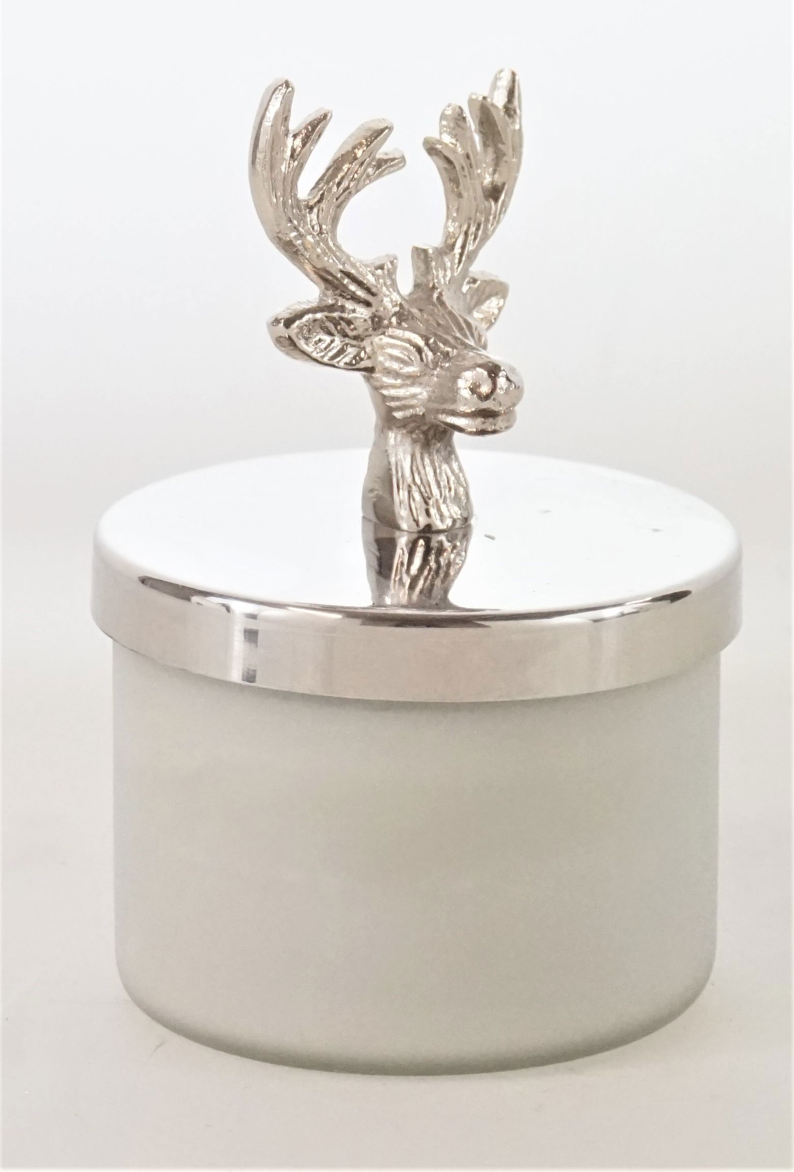 This exquisite candle box is characterised by its individual design and high level of craftsmanship. The intricately crafted stag motif is worked into the silver aluminium casing in great detail, creating an amazing 3D effect. The warm candlelight shines through the transparent glass, creating a cosy and relaxed atmosphere. With a size of approx. 11.5 cm, it fits perfectly on any surface and creates a unique ambience.