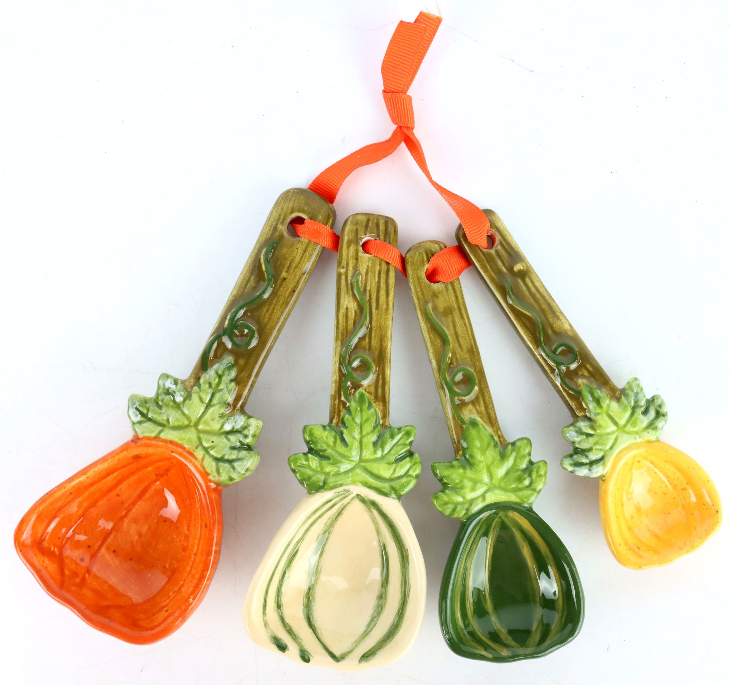 ENDiscover our enchanting set of four "Pumpkin" ceramic measuring spoons, the perfect addition to any kitchen. Our four-piece measuring spoon set (item number 9343) will add charm and style to your culinary creations, especially in the autumn/winter season.