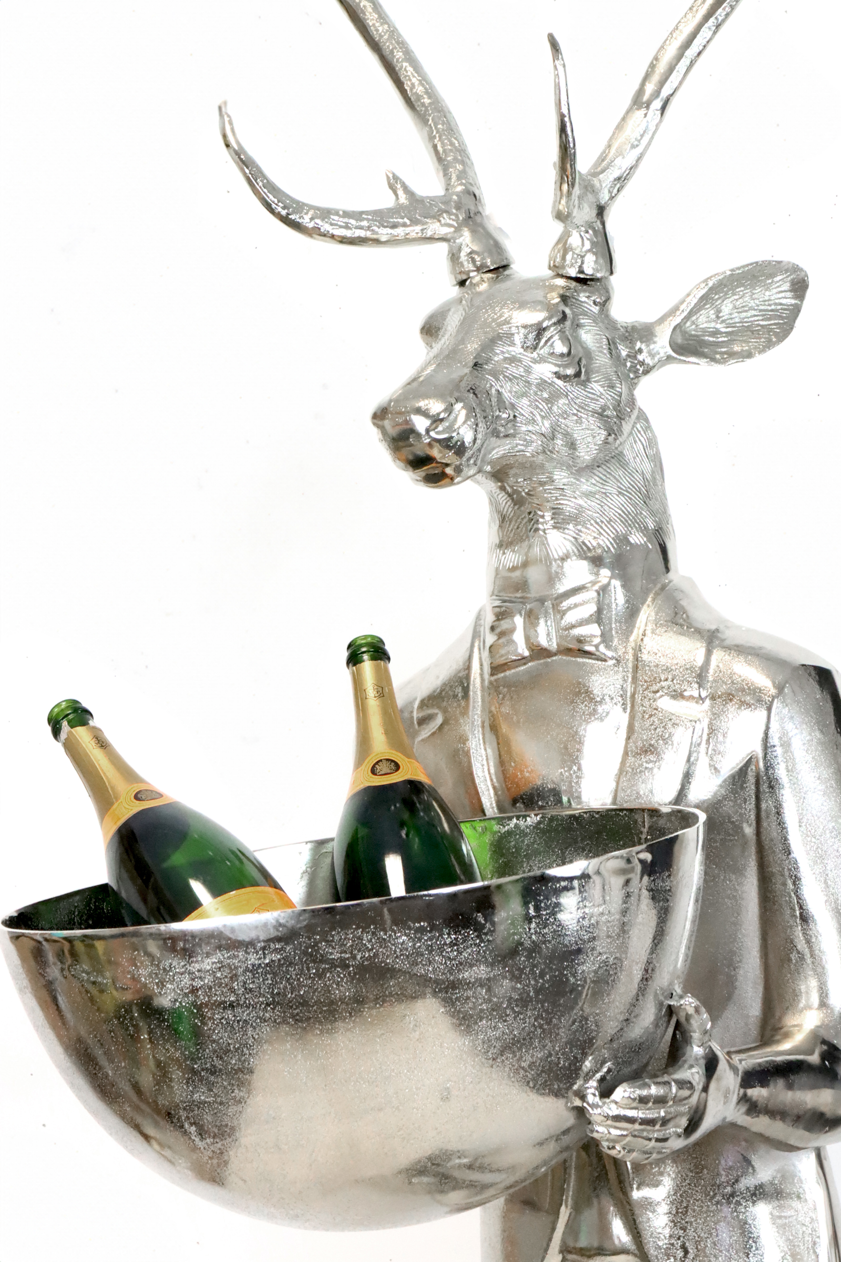 The XL-BUTLER "HIRSCH" impresses with its detailed design and high-quality materials. Made from robust metal, it brings a touch of luxury to any room with its elegant silver finish. The integrated bowl on the deer's back offers a variety of uses, whether as a serving bowl for festive occasions or as a decorative element with fairy lights and Christmas baubles. Let your creativity run wild and create unique presentations for your customers.