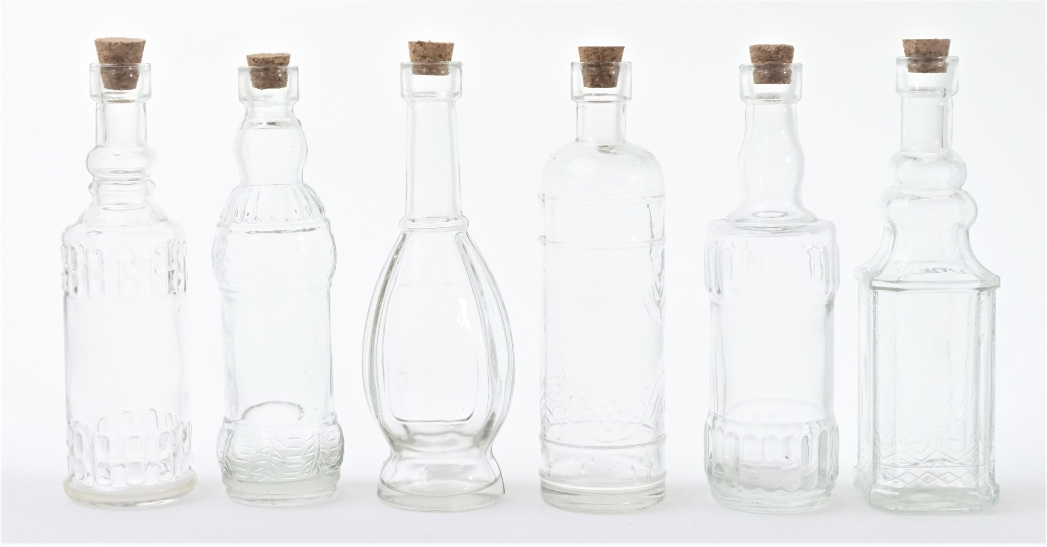 - Juego de 6 botellas de vidrio de alta calidad con tapón de corcho