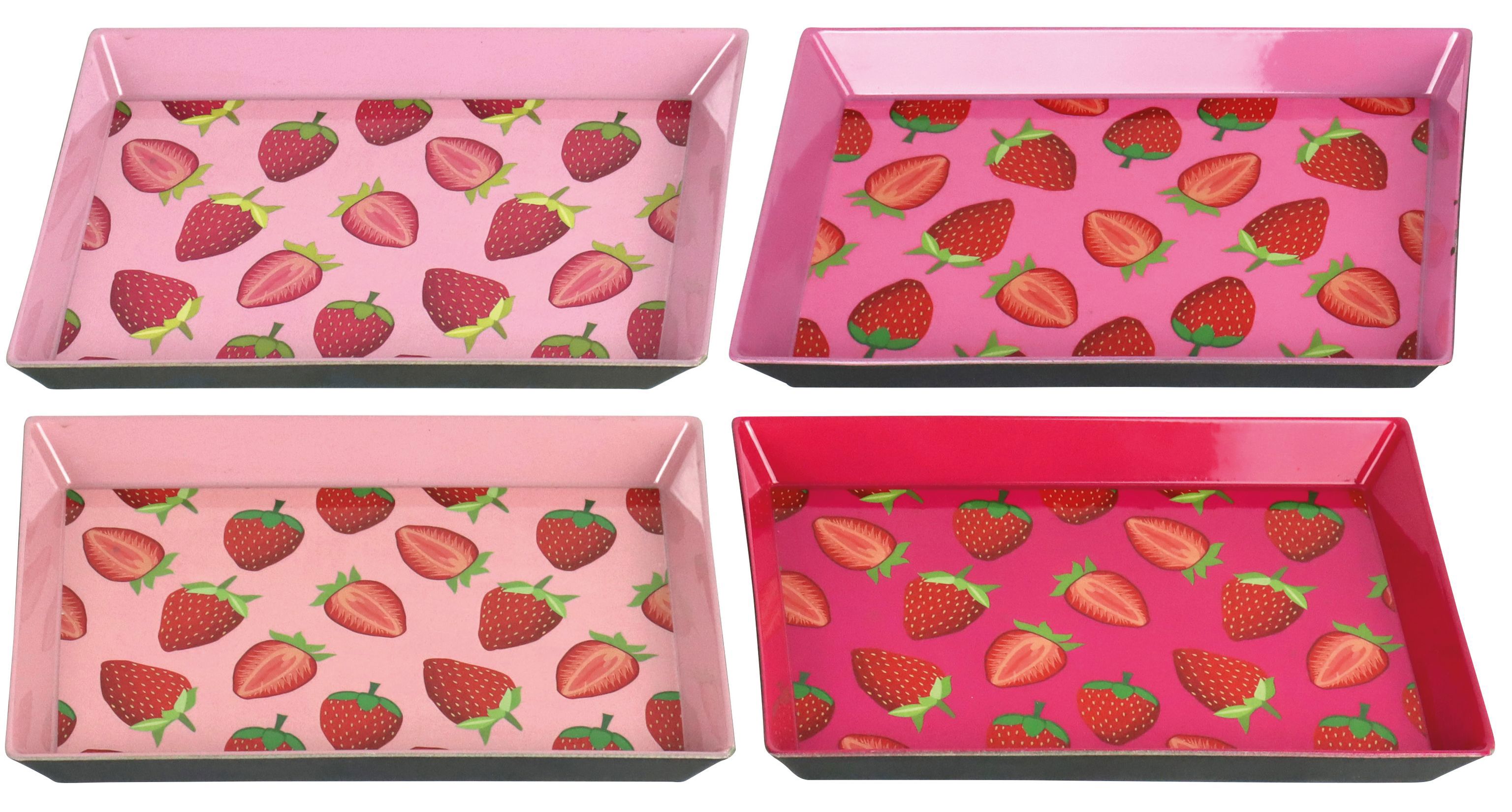 Los coloridos motivos de fresas dan a las bandejas un aspecto fresco y alegre. No sólo añaden un toque veraniego a cualquier habitación, sino que también son un punto de venta para los minoristas que quieren ofrecer a sus clientes algo especial. Presente este alegre juego en su tienda como reclamo decorativo o intégrelo en expositores temáticos para despertar el interés de sus clientes.