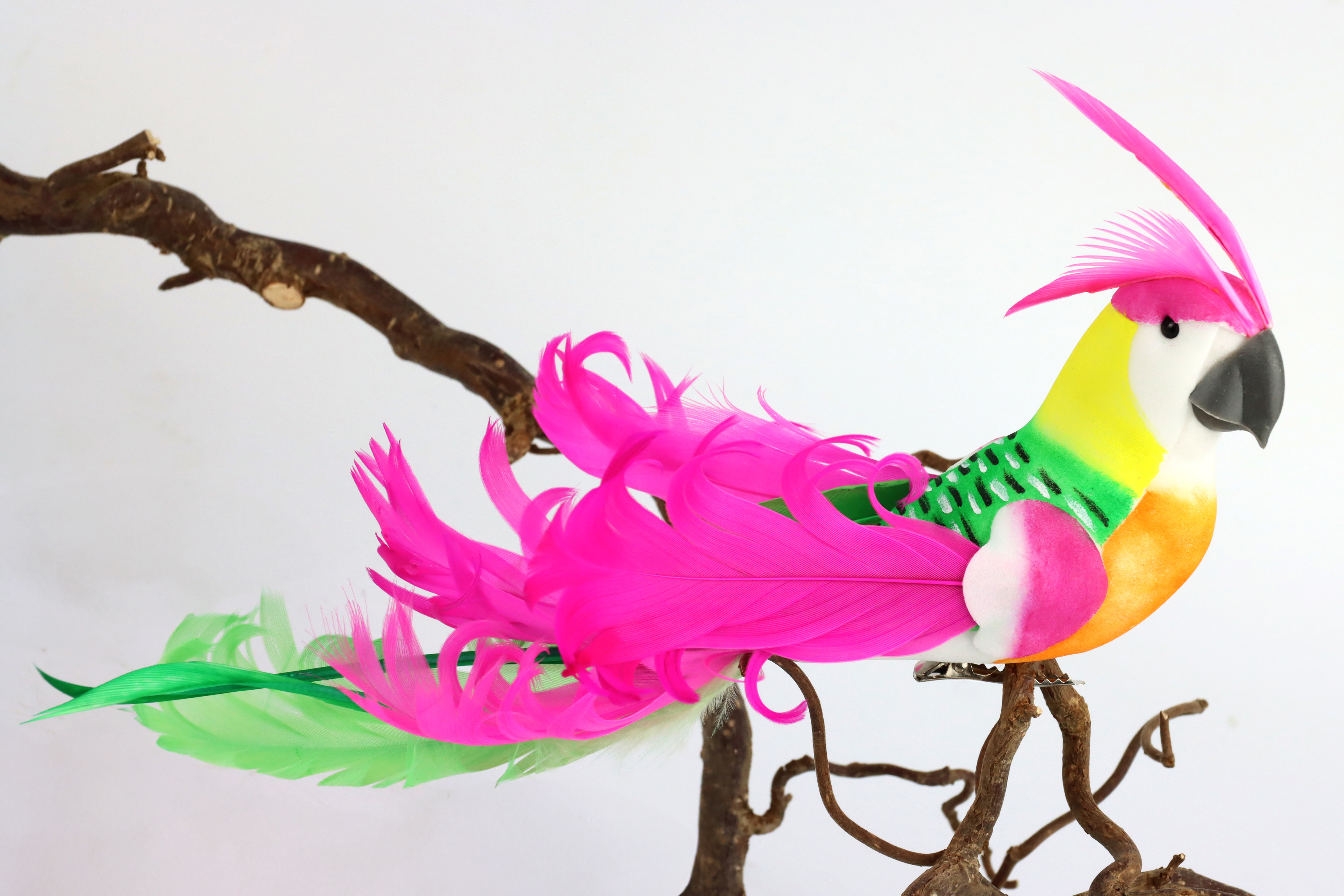 Las pinzas para loros están hechas de poliestireno de alta calidad y decoradas con detalladas plumas artificiales para garantizar un diseño realista y colorido. Cada loro mide unos 19 cm y está provisto de un clip metálico que permite fijarlo con facilidad y flexibilidad. Estas características hacen que los clips sean versátiles, ya sea para adornar plantas, cortinas o mostradores de tiendas.