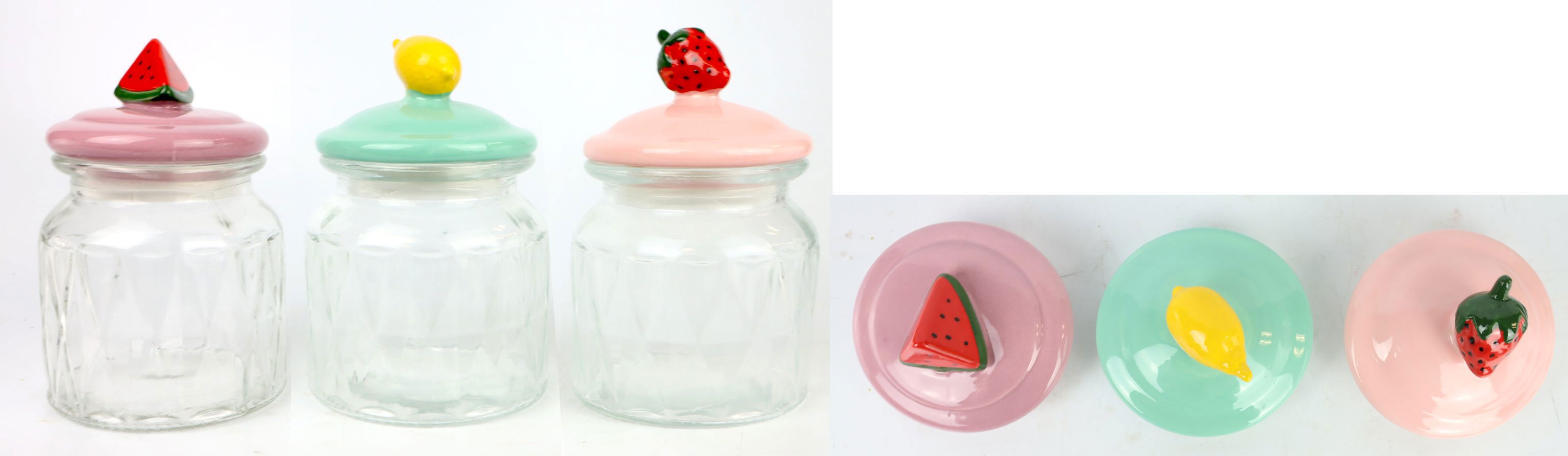 Cada tarro presenta una ornamentada tapa de fruta rosa que es a la vez estética y práctica. La combinación de cristal resistente y cerámica de alta calidad garantiza que sus clientes adquieran un producto duradero que destacará en el uso diario. Con una altura aproximada de 18 cm, cada tarro ofrece espacio suficiente para guardar una gran variedad de productos, ya sean alimentos, como pasta y arroz, o artículos decorativos para el hogar.