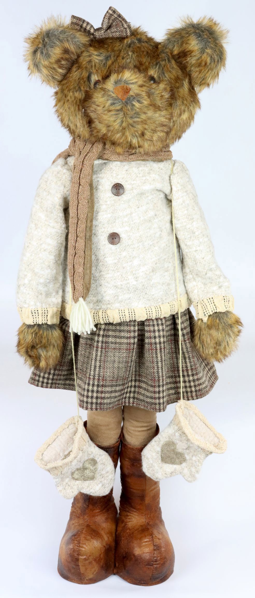 Con su aspecto navideño, la dama oso irradia un ambiente cálido y acogedor y aporta un toque de encanto nostálgico a cualquier interior. Es ideal como decoración en su tienda, como reclamo en el escaparate o como atractiva oferta para sus clientes para decoraciones navideñas personalizadas en casa.