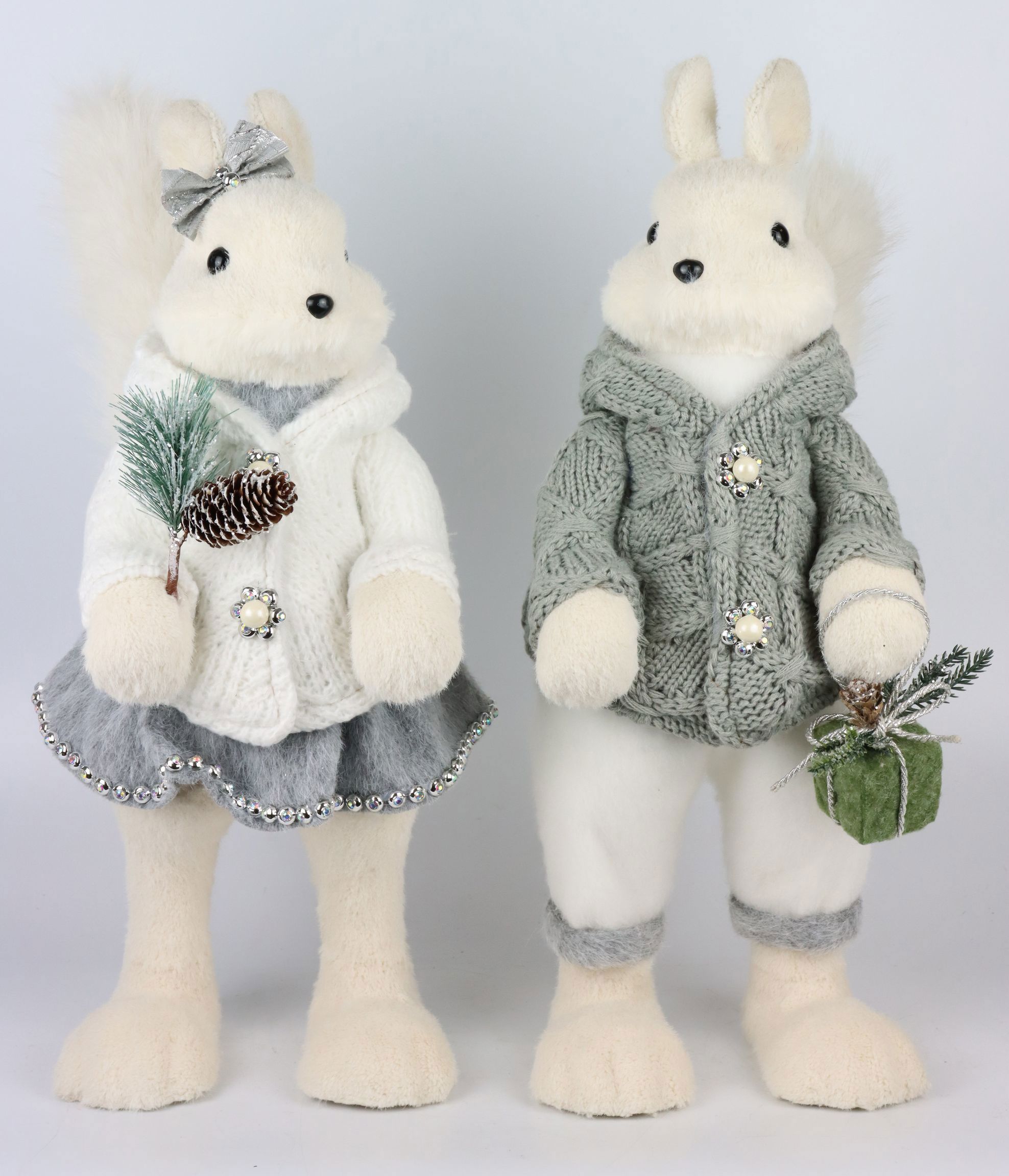 Añade un toque de magia invernal a tu gama navideña con nuestro encantador set de ardillas "Colas escarchadas". Este set de dos piezas, formado por una pareja de ardillas escarchadas, es el complemento perfecto para cualquier decoración navideña de un comercio. Los animales, en elegantes tonos grises y blancos, desprenden una elegancia sofisticada pero juguetona que añadirá un toque festivo a cualquier ambiente.