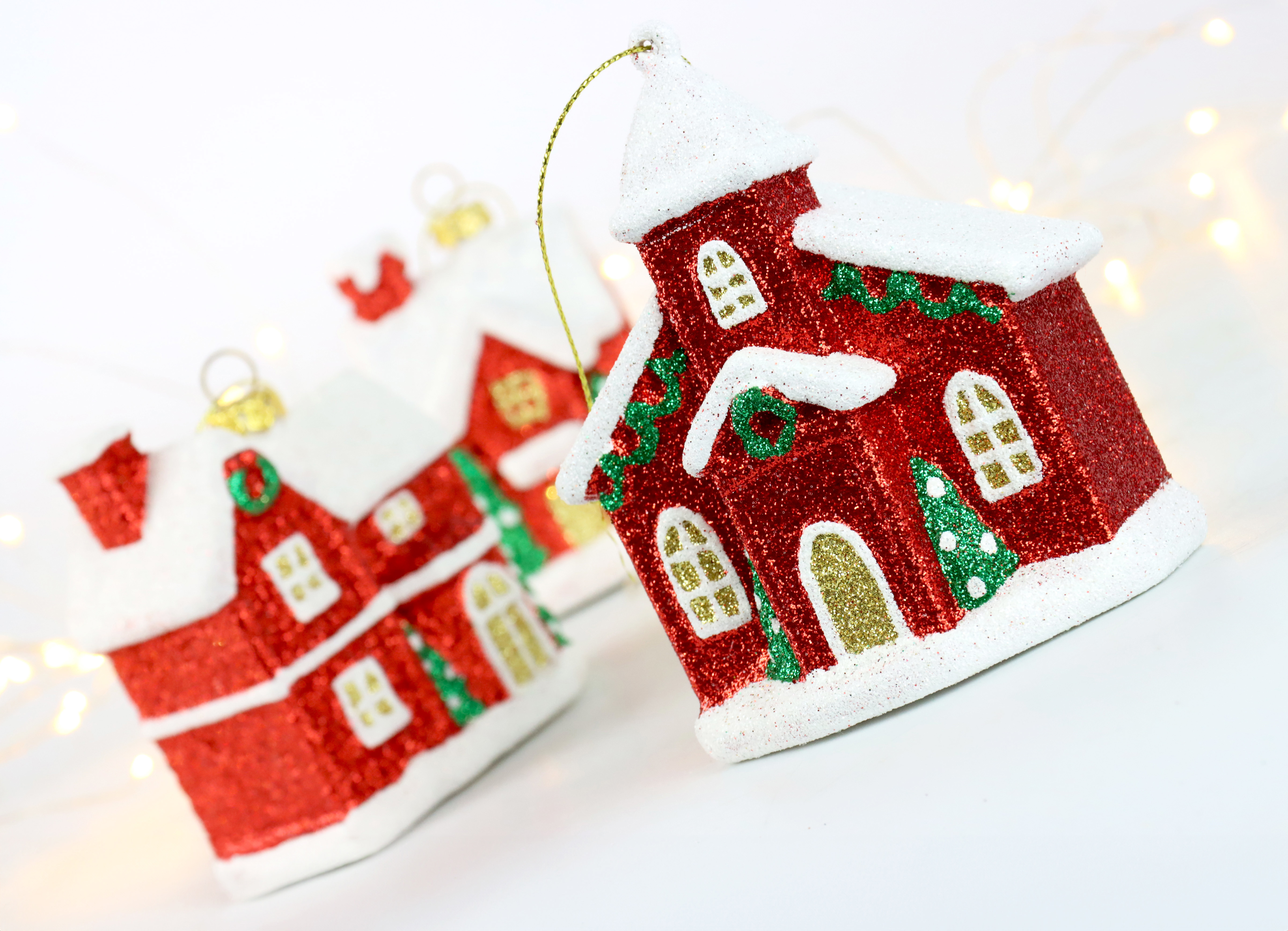 Palabras clave: adornos decorativos "casitas", decoración navideña, set de 3, plástico de alta calidad, purpurina, idea de regalo, vida y estilo de vida, Navidad, papelería