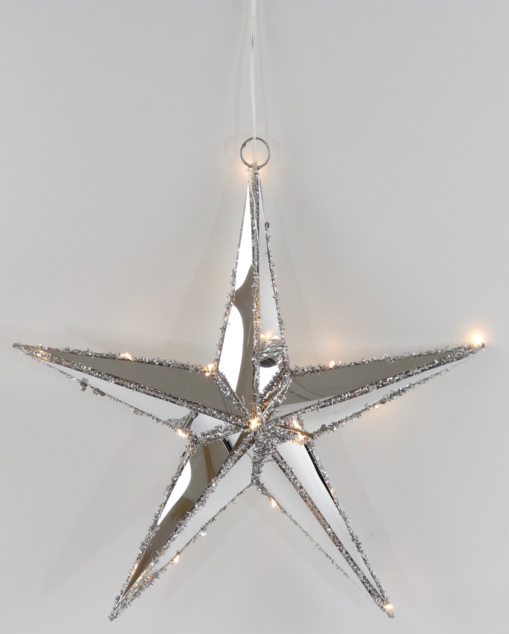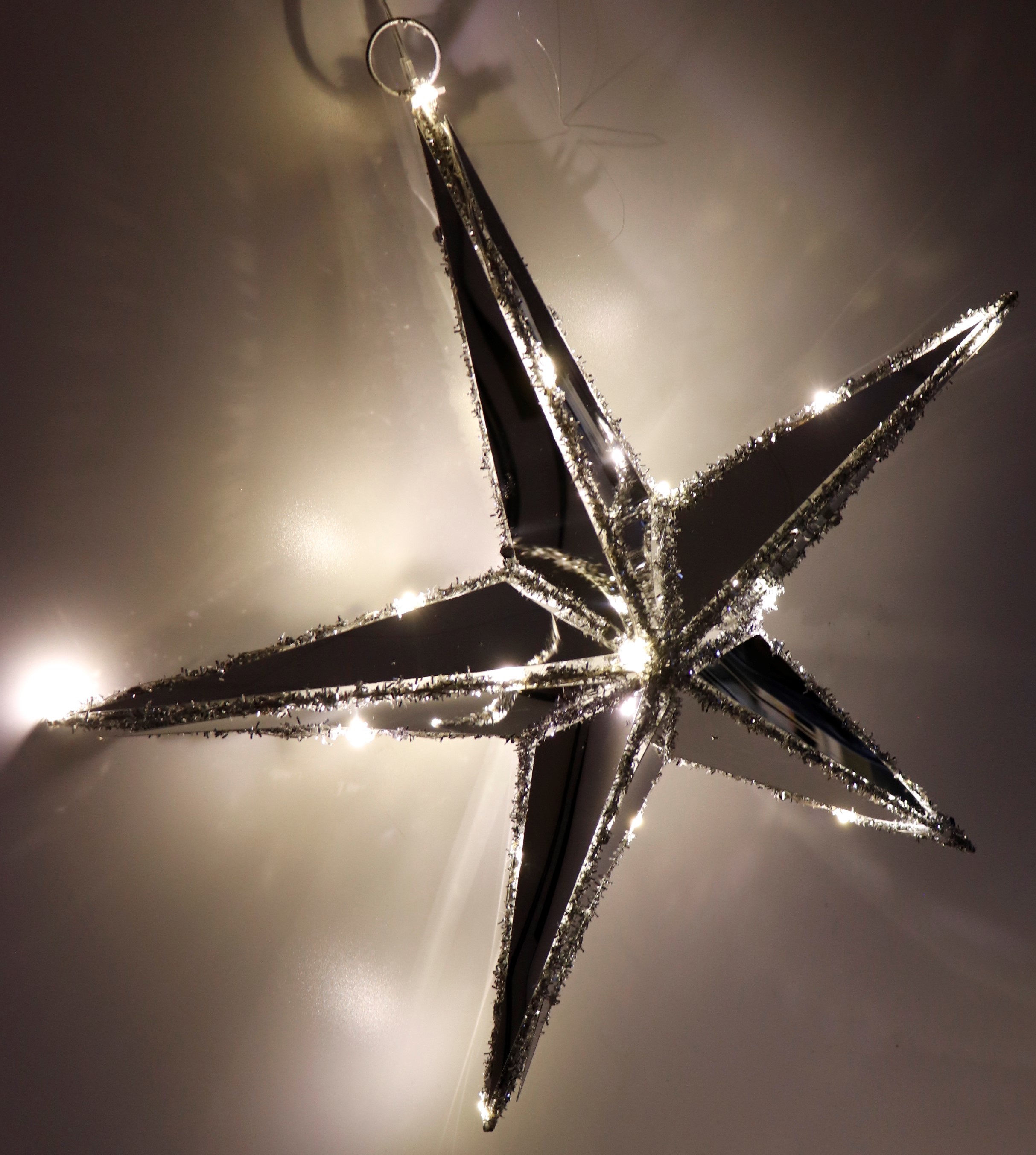 - Estrella iluminada por LED de alta calidad con efecto reflectante y borde plateado