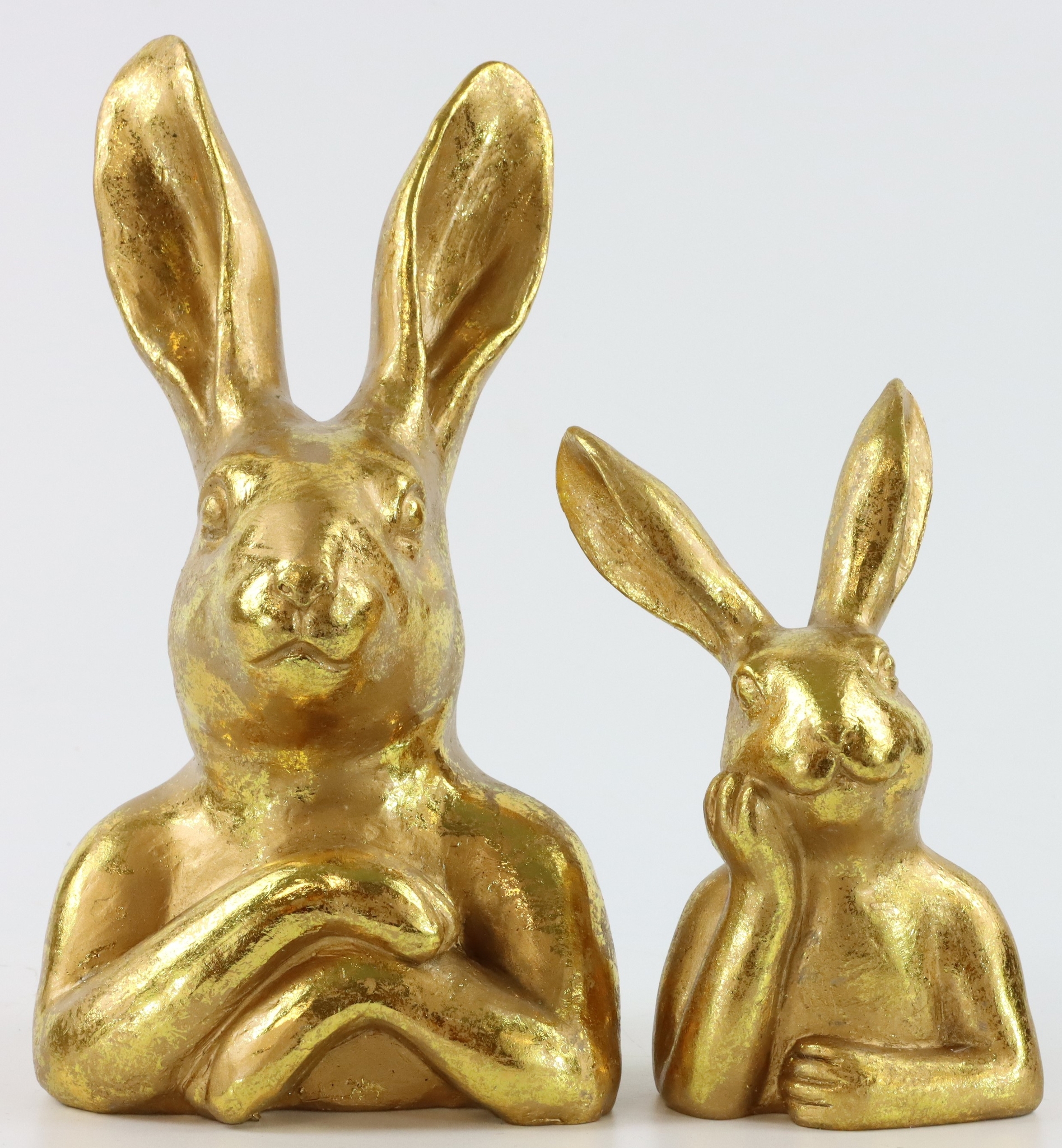 - Elegante set de 2 piezas: compuesto por dos bustos de conejo de tamaño diferente fabricados en poliresina.