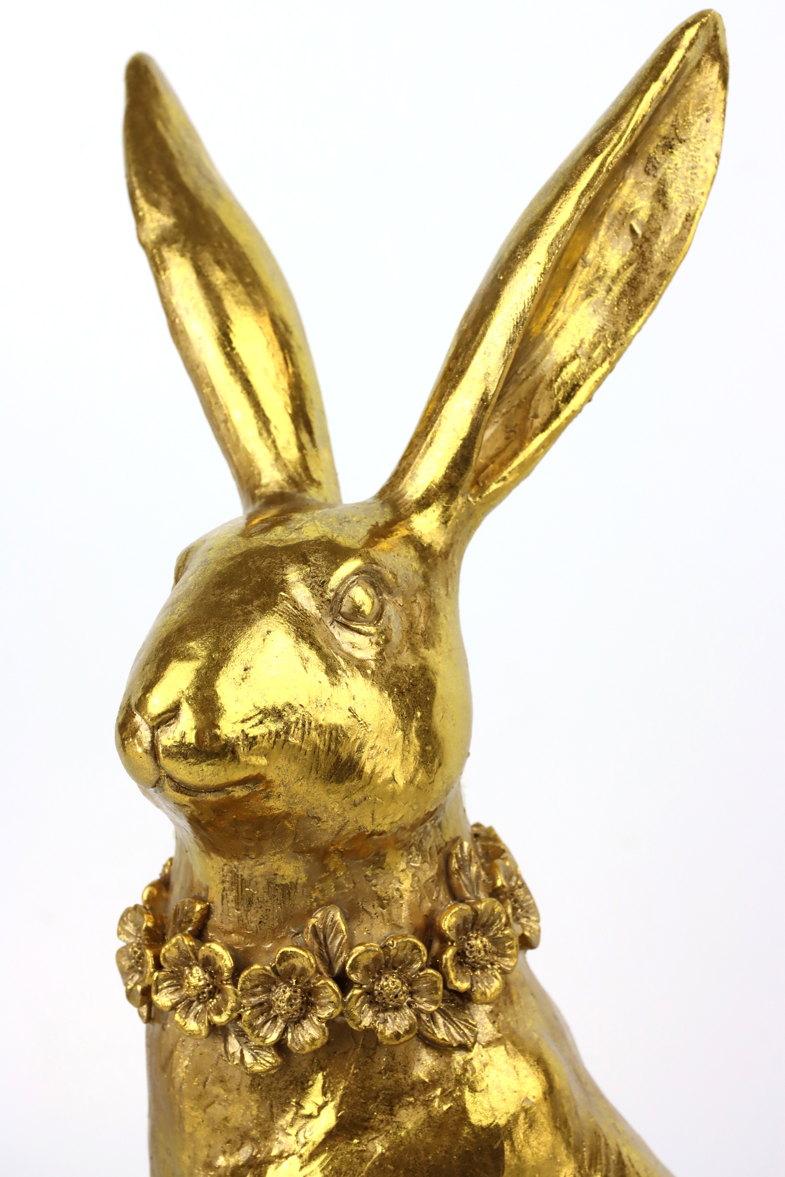 Optimice su gama de productos y destaque entre la multitud ofreciendo a sus clientes estas decoraciones exclusivas y de moda. Nuestros conejitos "GOLDEN DUST" no sólo son decorativos, sino también robustos y duraderos. La poliresina como material ofrece la ventaja de ser resistente a la intemperie y fácil de cuidar, lo que hace que nuestros conejitos sean ideales para una gran variedad de arreglos, tanto en interiores como protegidos al aire libre.