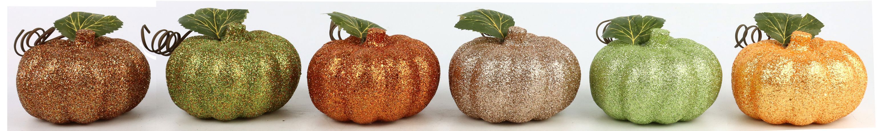 - Las calabazas vienen en una mezcla de colores otoñales y purpurina para un mayor atractivo visual