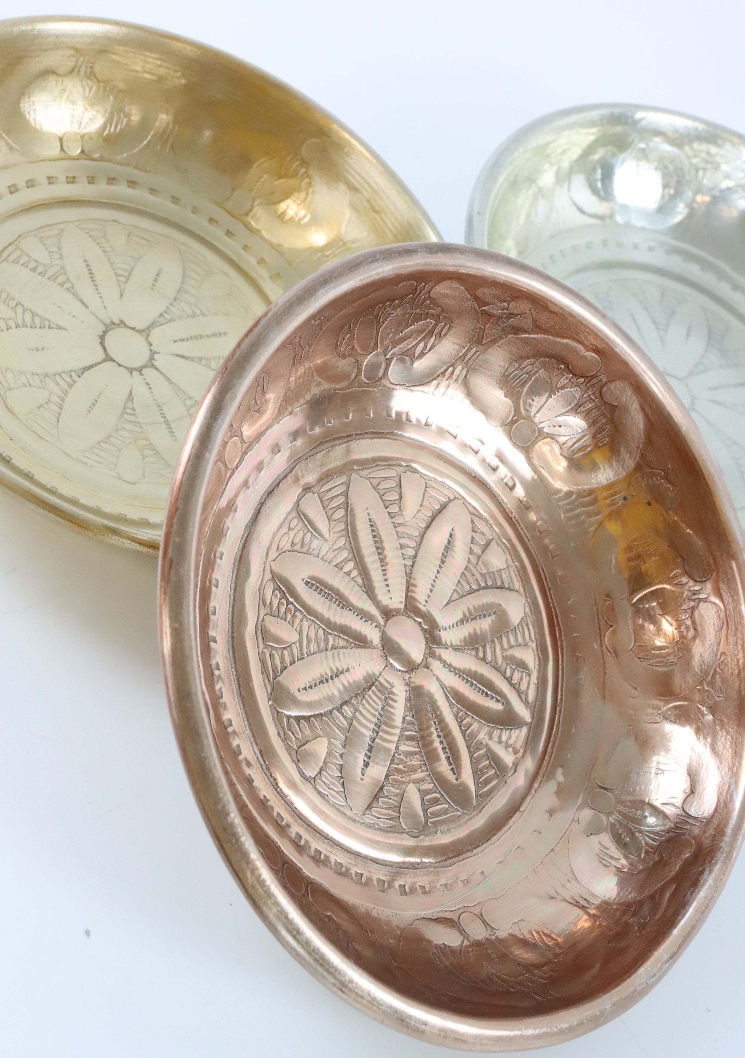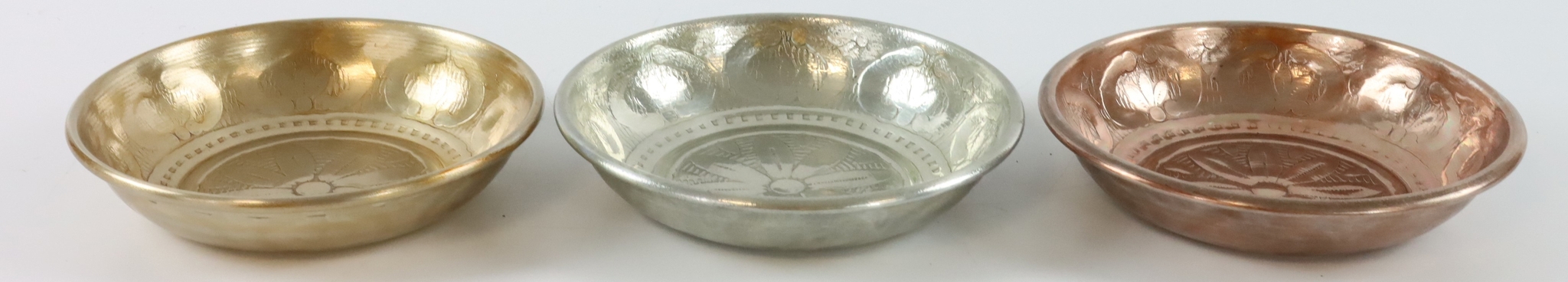 Découvrez l'élégance intemporelle et la diversité avec notre set de 3 bols "MEDINA". Ce set exquis, composé de trois élégants bols dans les couleurs précieuses or, argent et bronze, apporte un charme oriental à votre magasin et enrichit l'ambiance d'une touche d'exclusivité. Les "COUPELLES MEDINA" ne sont pas seulement fonctionnelles, elles attirent également le regard sur toute table de présentation aménagée avec style ou dans une vitrine décorée.