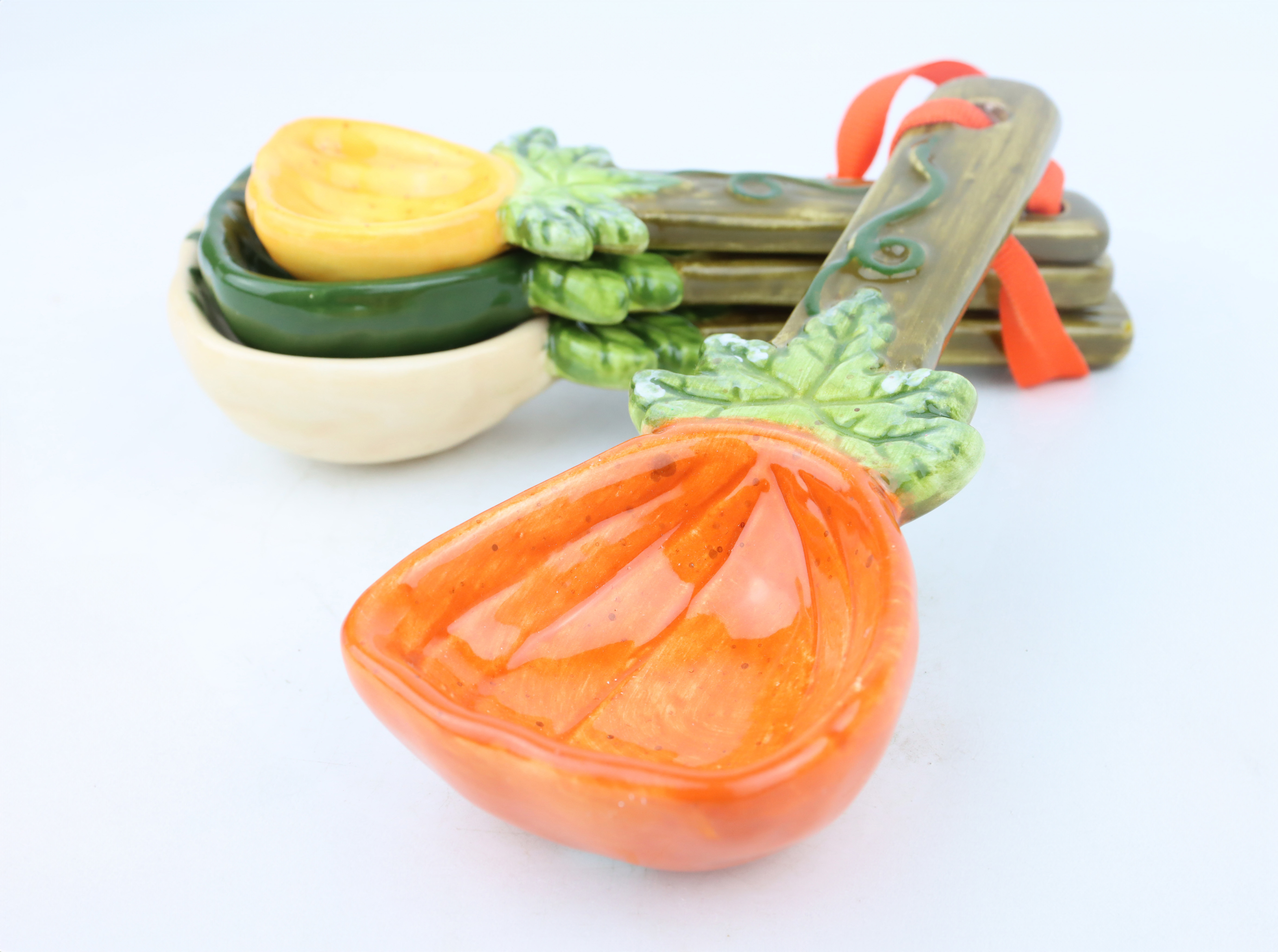 Découvrez notre charmant set de quatre cuillères à mesurer en céramique "Pumpkin", le complément parfait pour toute cuisine. Notre set de quatre cuillères à mesurer (référence 9343) ajoutera du charme et du style à vos créations culinaires, en particulier pendant la saison automne/hiver.